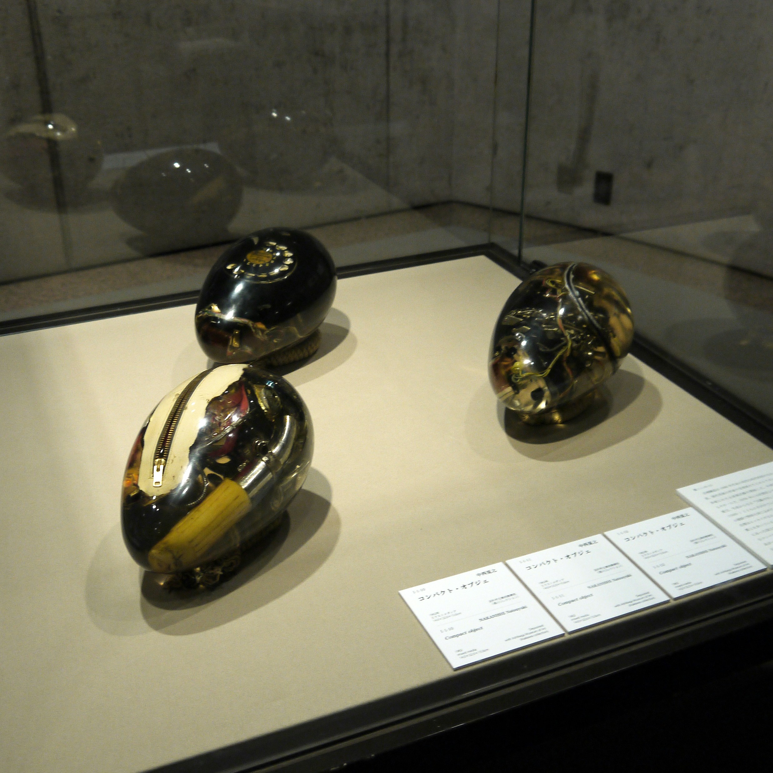 関連作品の中には、アクリル樹脂で様々な物体を封じ込めた中西夏之の代表作《コンパクト・オブジェ》(1962)も含まれる。同作は、吉増のエッセイ「中西夏之の磁場を歩く」(『螺旋形を想像せよ』収載[小沢書店、1981])のなかにも登場する、吉増にとってゆかりのある作品とされている。