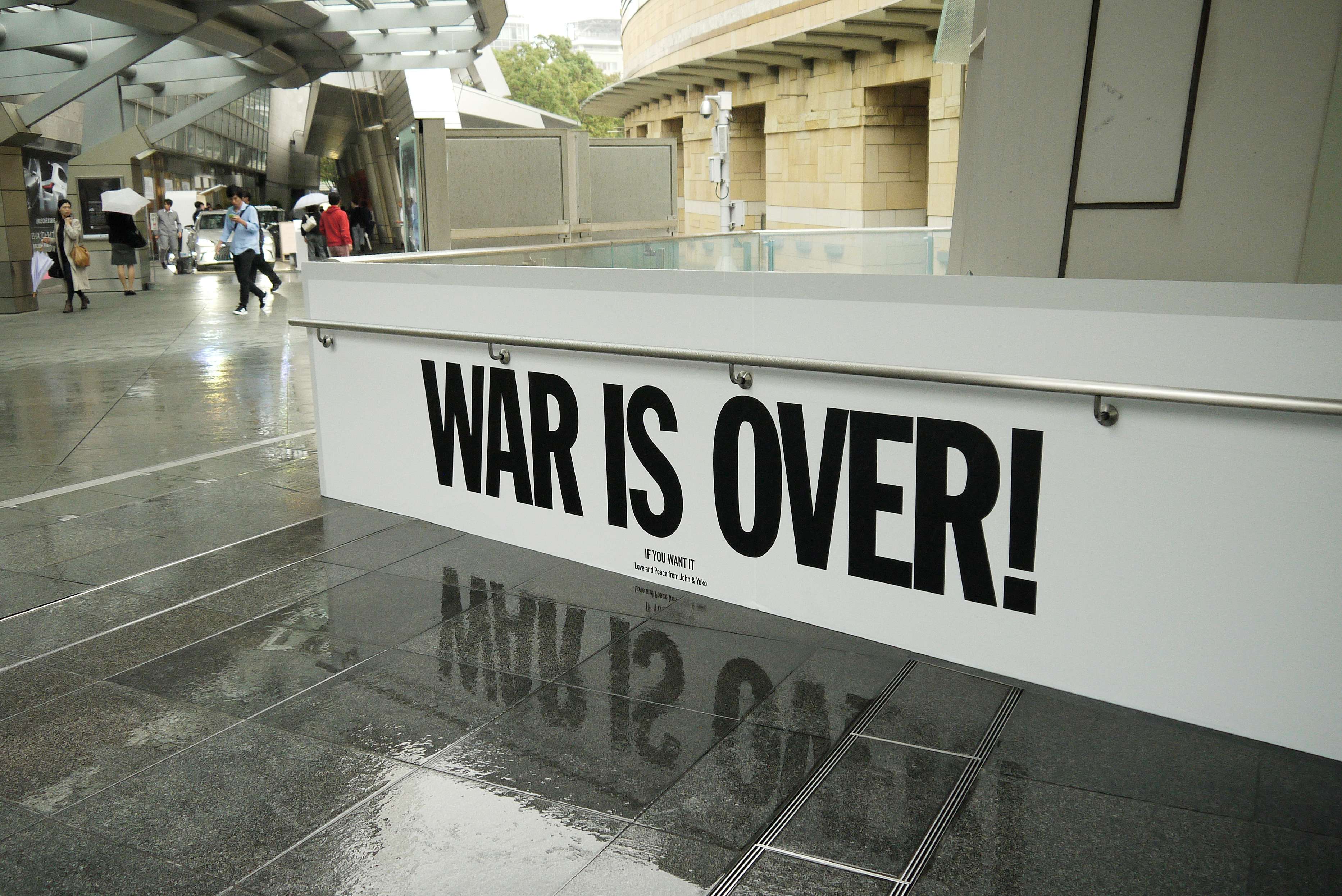 作品は会場外にも。オノ・ヨーコ《戦争は終わる》(1969 / 2018)