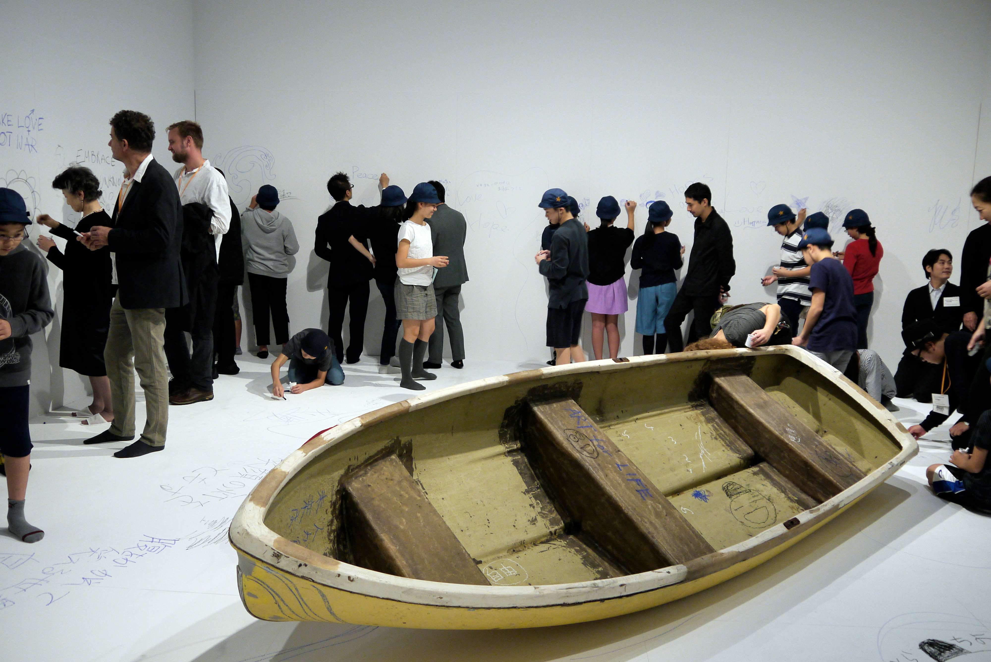 展示風景よりオノ・ヨーコ《色を加えるペインティング(難民船)》(2018)