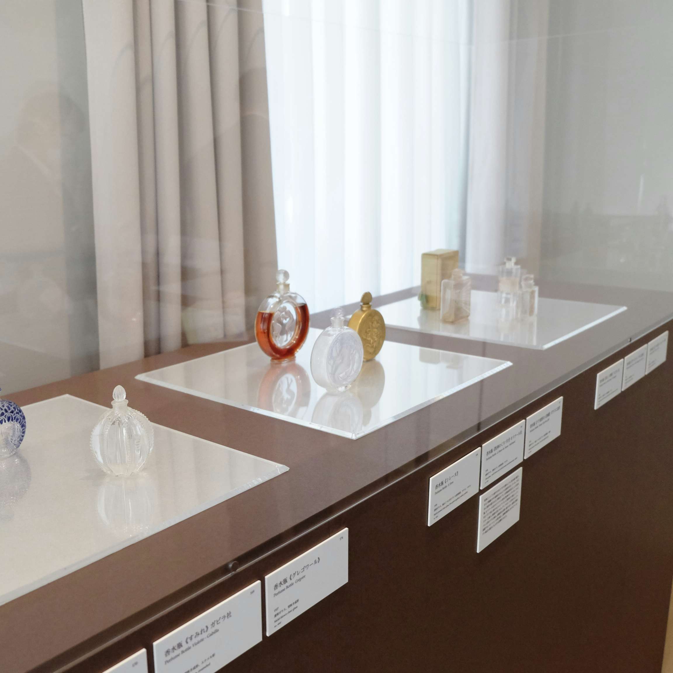 ラリックがガラス工芸家として名をなすきっかけとなったのが、香水商フランソワ・コティとの出会いだった。コティの注文によってラリックが瓶やラベルをデザインした香水は、多くの人気を集めて、その名声を高めた。当時の香水瓶の複雑な装飾からは、気泡が入らないようにガラスにプレスをして紋様をつけるなど、その人気を下支えした高い技術がうかがえる。