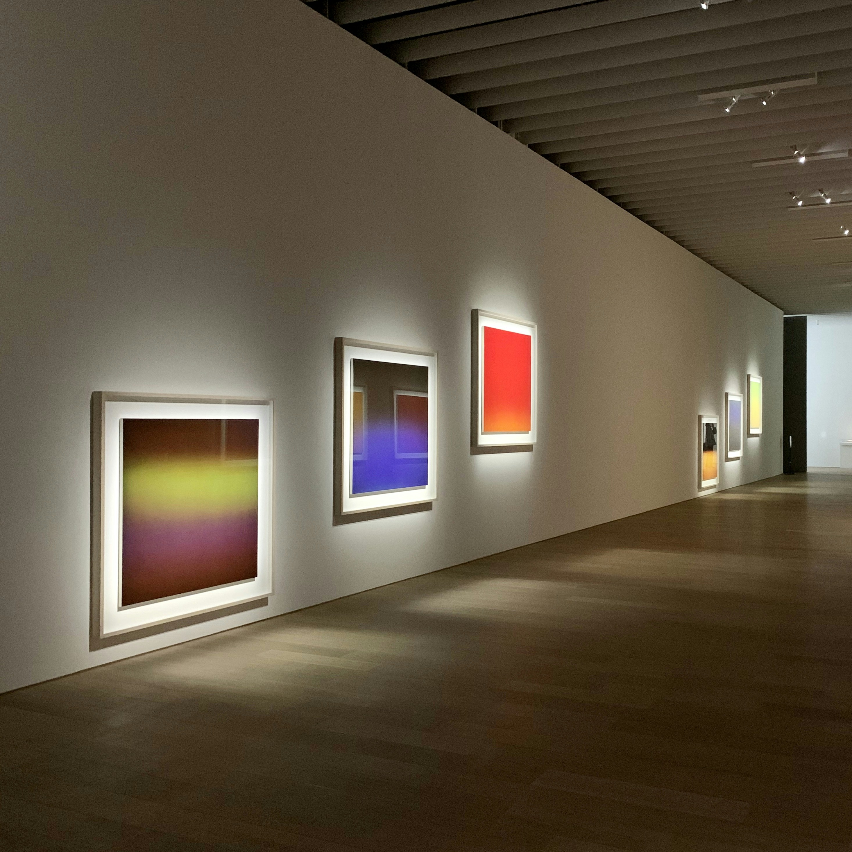 これを抜けた先には、世界初公開となる大判のカラー作品シリーズ「OPTICKS」がある。杉本が初めて「色そのもの」を撮影したこのシリーズは、プリズムに朝の光を通して分光させた「光の階調」を撮影したもの。ポラロイドで撮影し、一部デジタル技術を加えてから、さらに大型プリントで印刷するというアナログとデジタルが混在した作品だ。