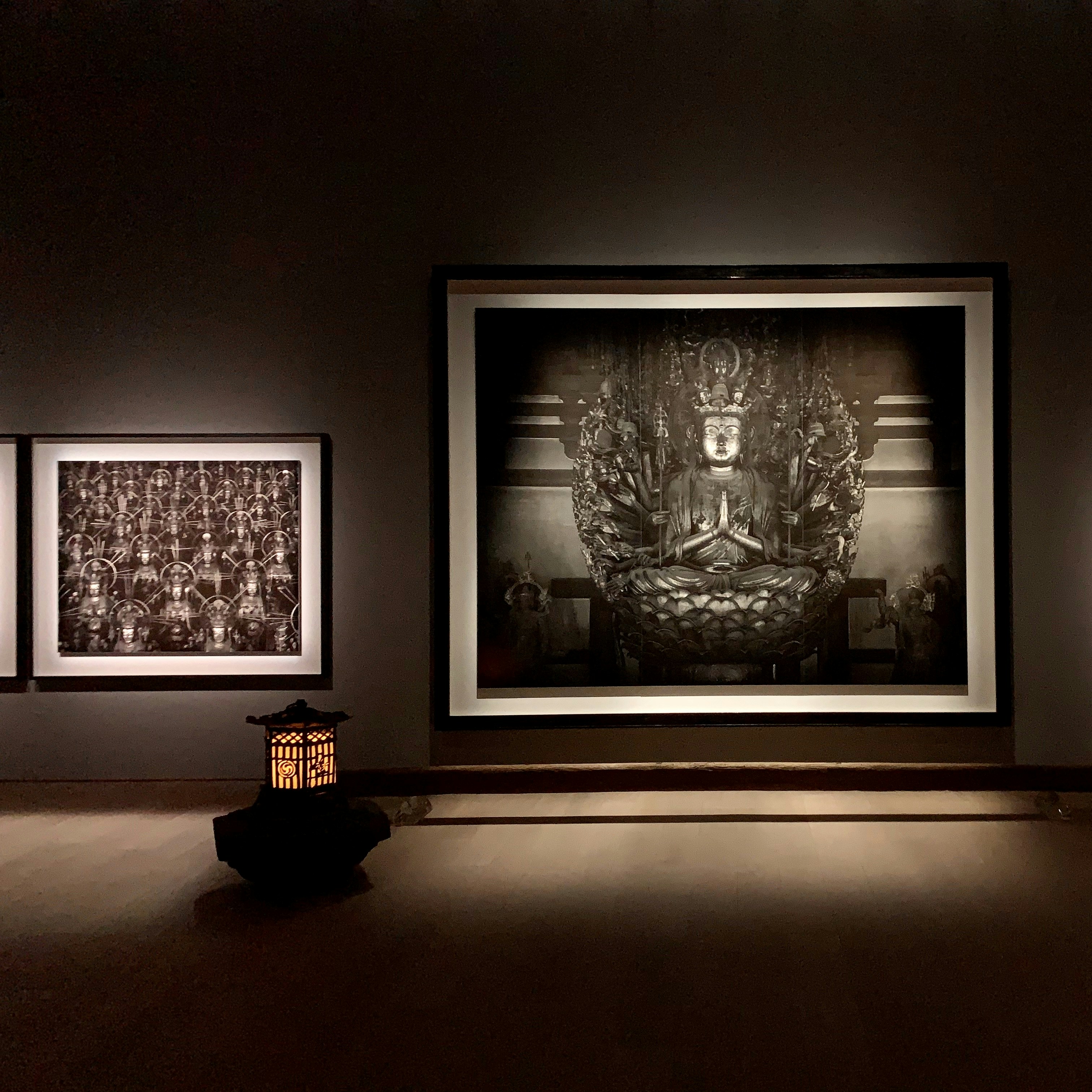 これに加え、三十三間堂の中尊を写した3枚組の大作も展示。これは世界初公開となる。仄暗い室内は、隣接する「OPTICKS」と明確なコントラストをなす。