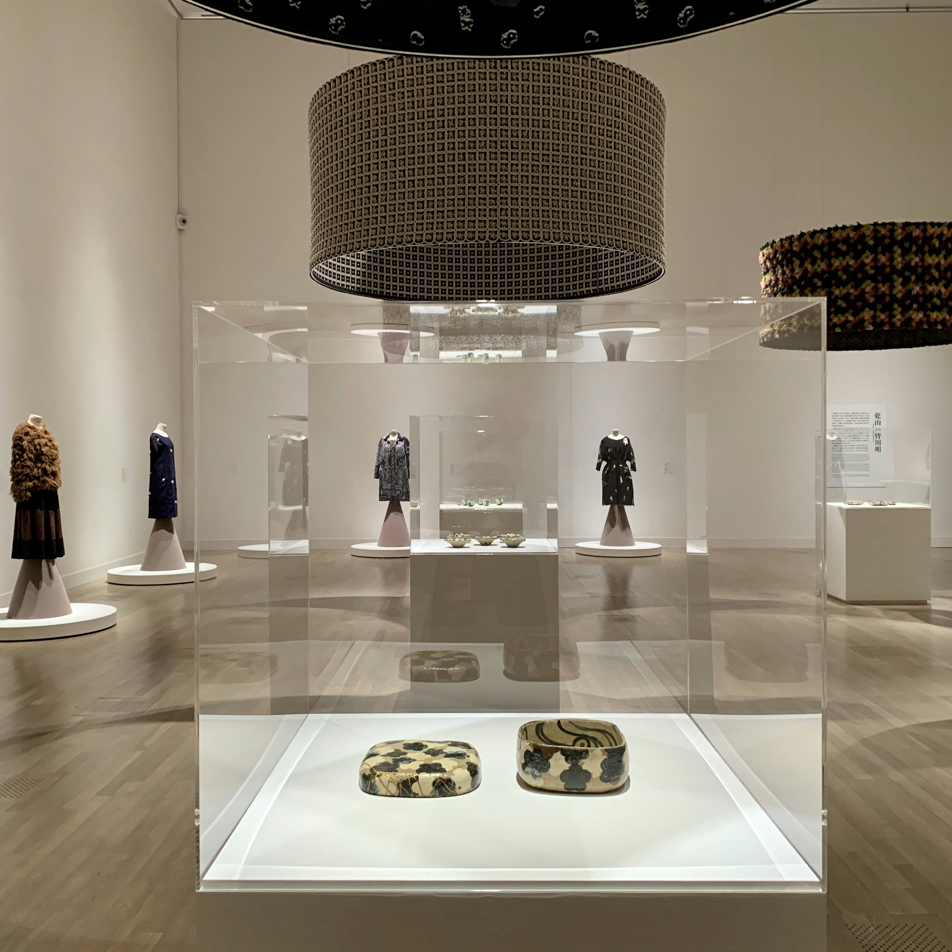 皆川は、乾山の作品について「私たちのものづくりも、工房の人たちと一緒に行うという意味で類似している。長い時間軸のなかで考えれば、300年は短いと思えるほどものづくりへの欲求は絶え間なく続いていくんだなと感じた」と語っている。皆川のテキスタイルや洋服、あるいはそのハギレは、乾山作品と見事な融合を見せる。