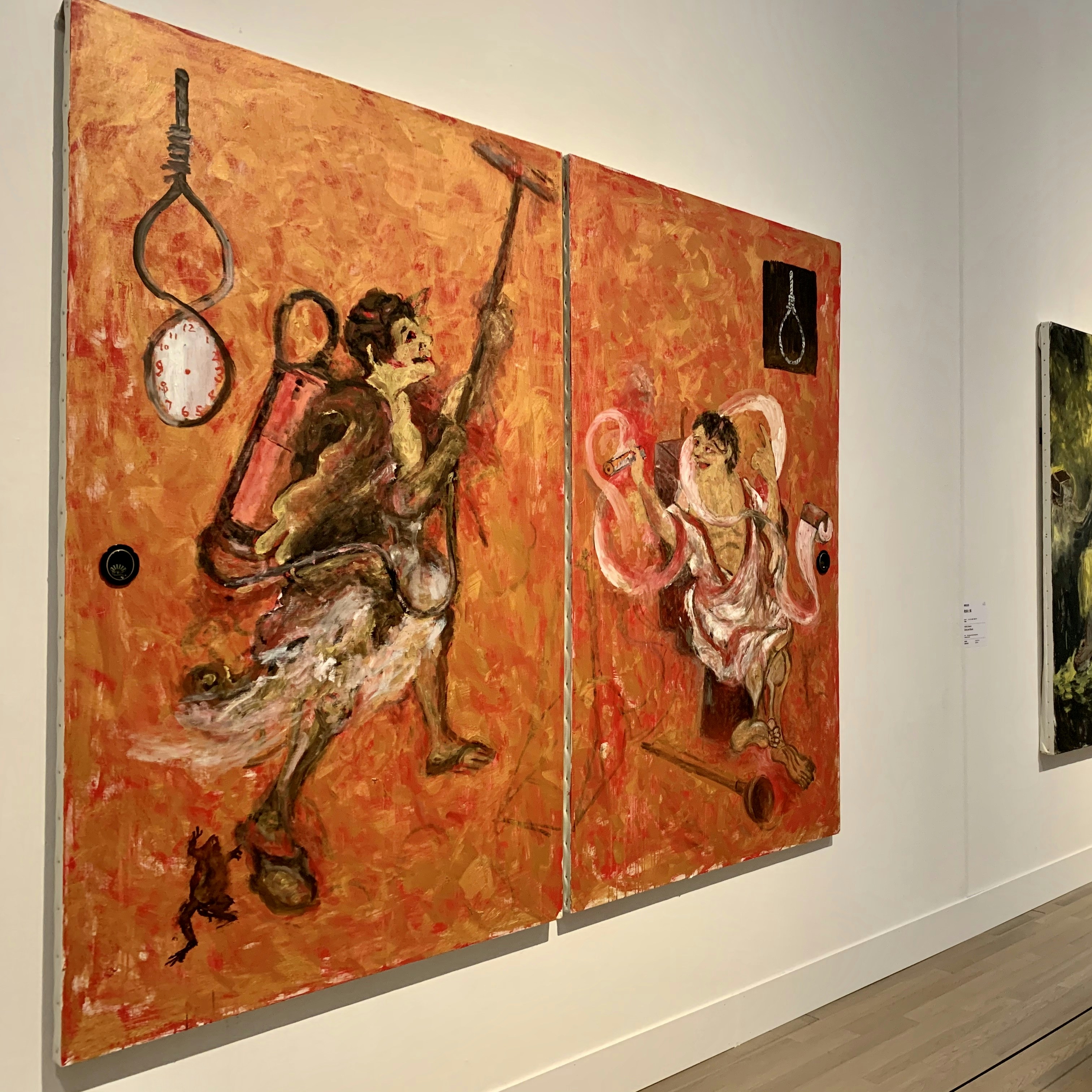 最後を飾るのは、曾我蕭白と横尾忠則だ。1970年代より蕭白に魅了され、作品でもオマージュを捧げてきた横尾。本展では、蕭白の《寒山拾得図屏風》(江戸時代)などとともに、横尾が初めて蕭白を引用した《ニューオリンズからの使者》(1994)や、新作となる《寒山拾得2020》(2019)を見ることができる。
