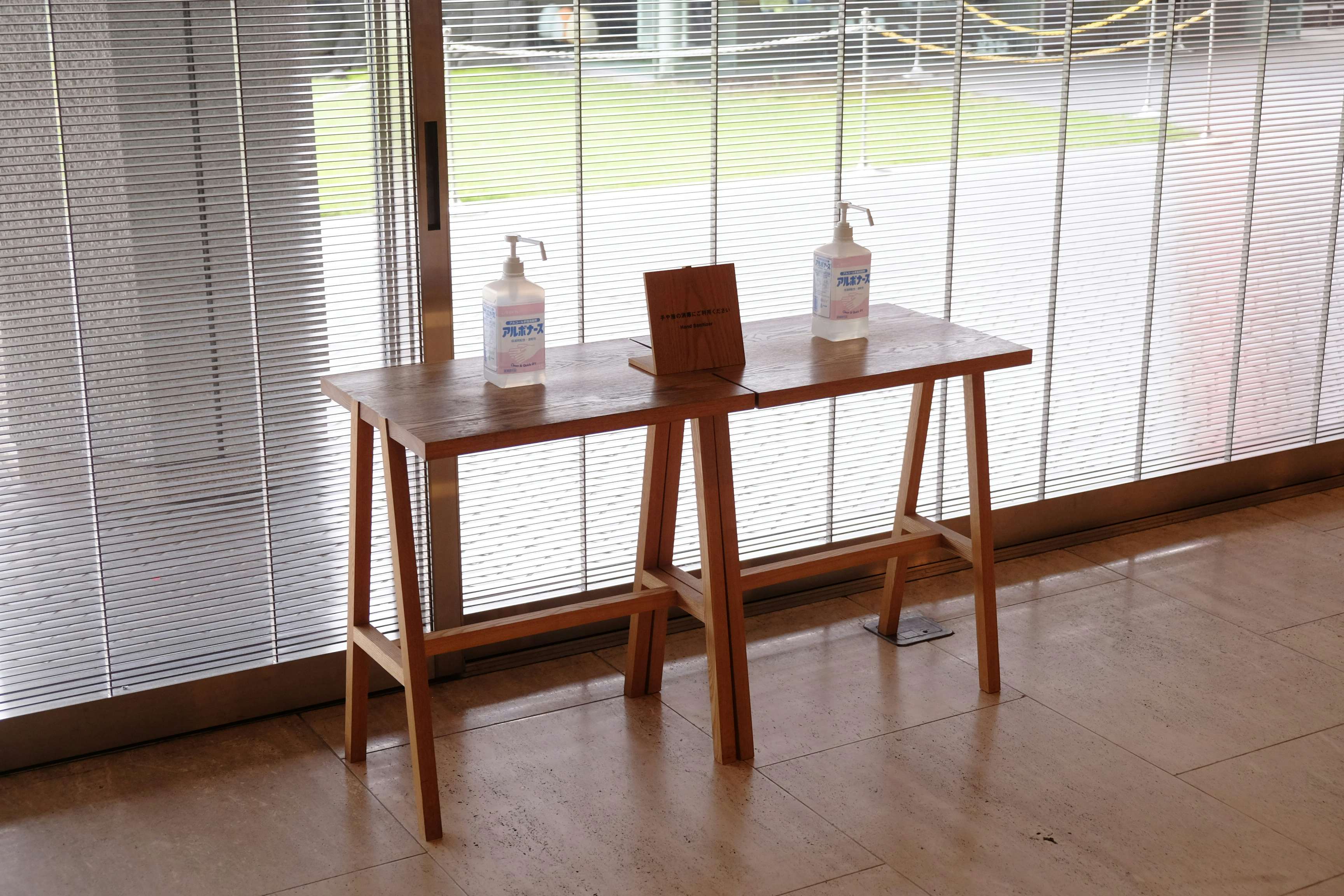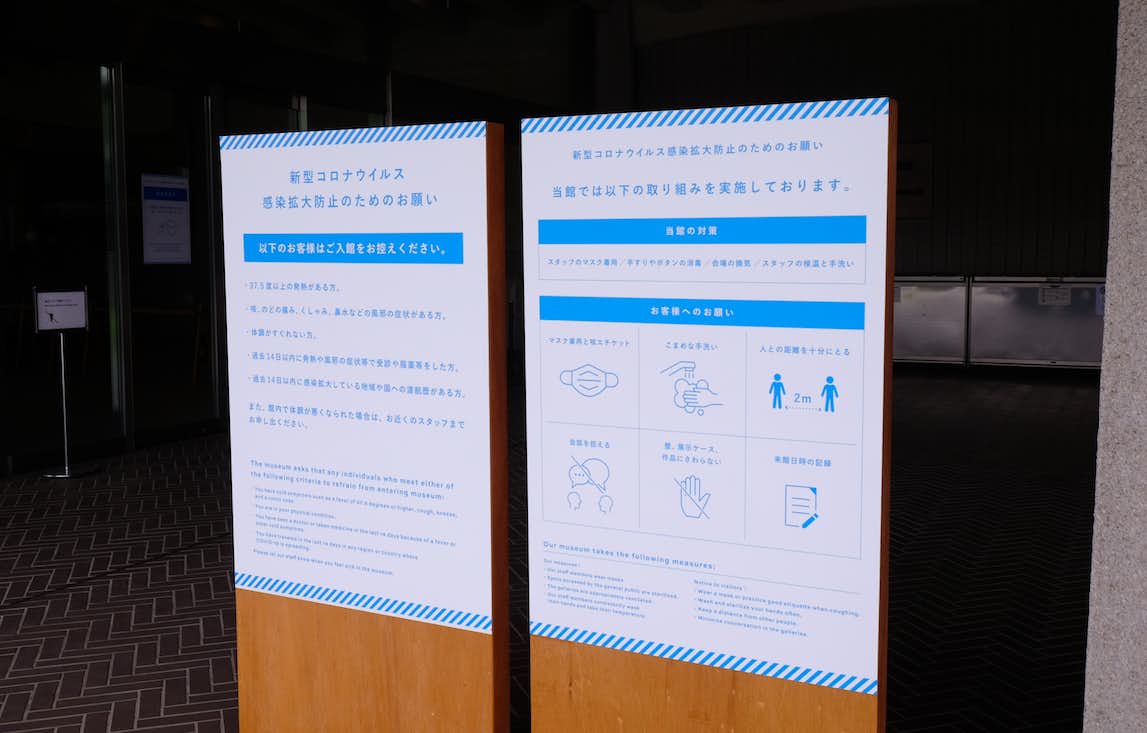 来館者に感染症対策を呼びかける看板