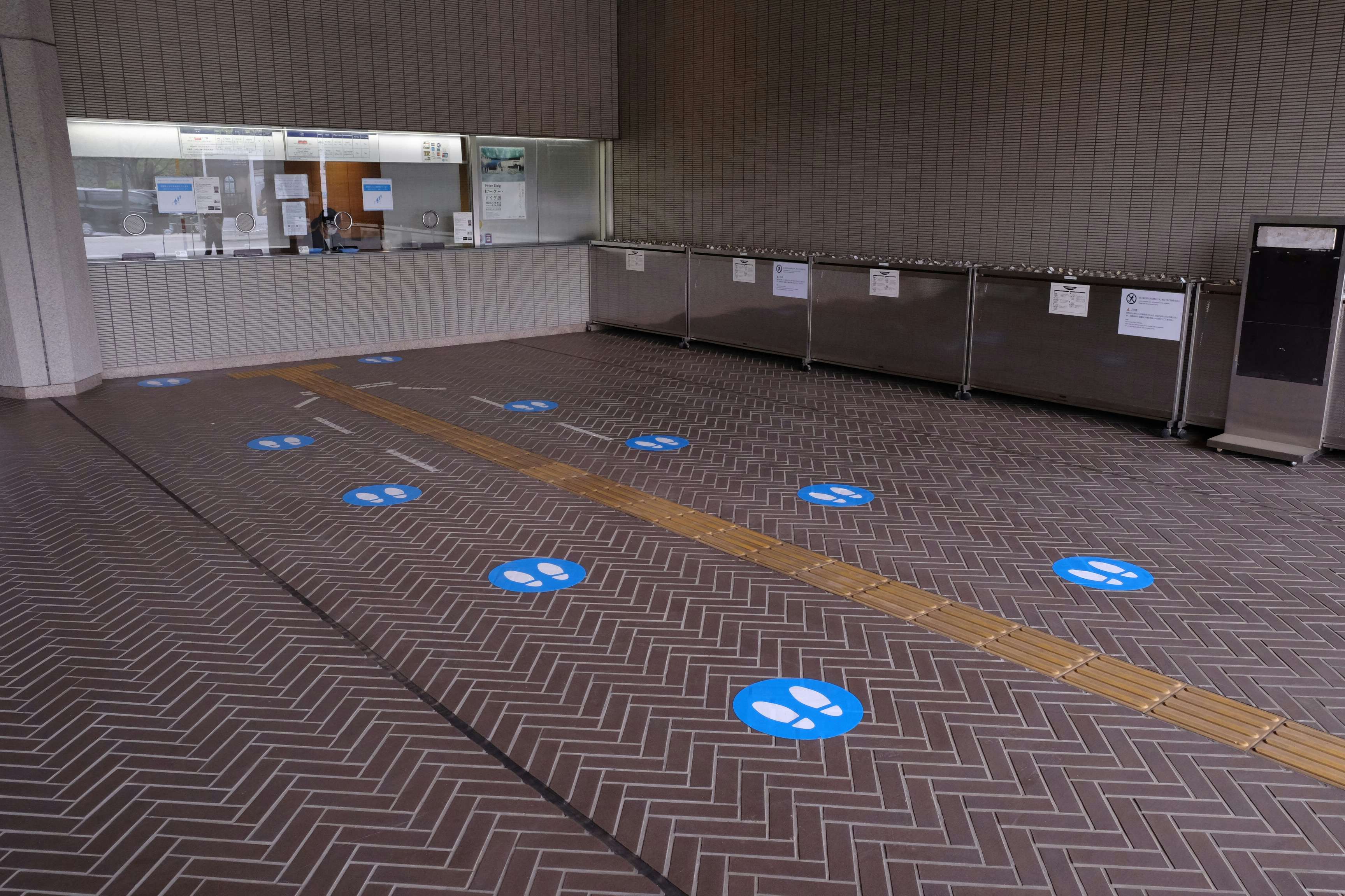 チケットカウンターの待機列のマーカー