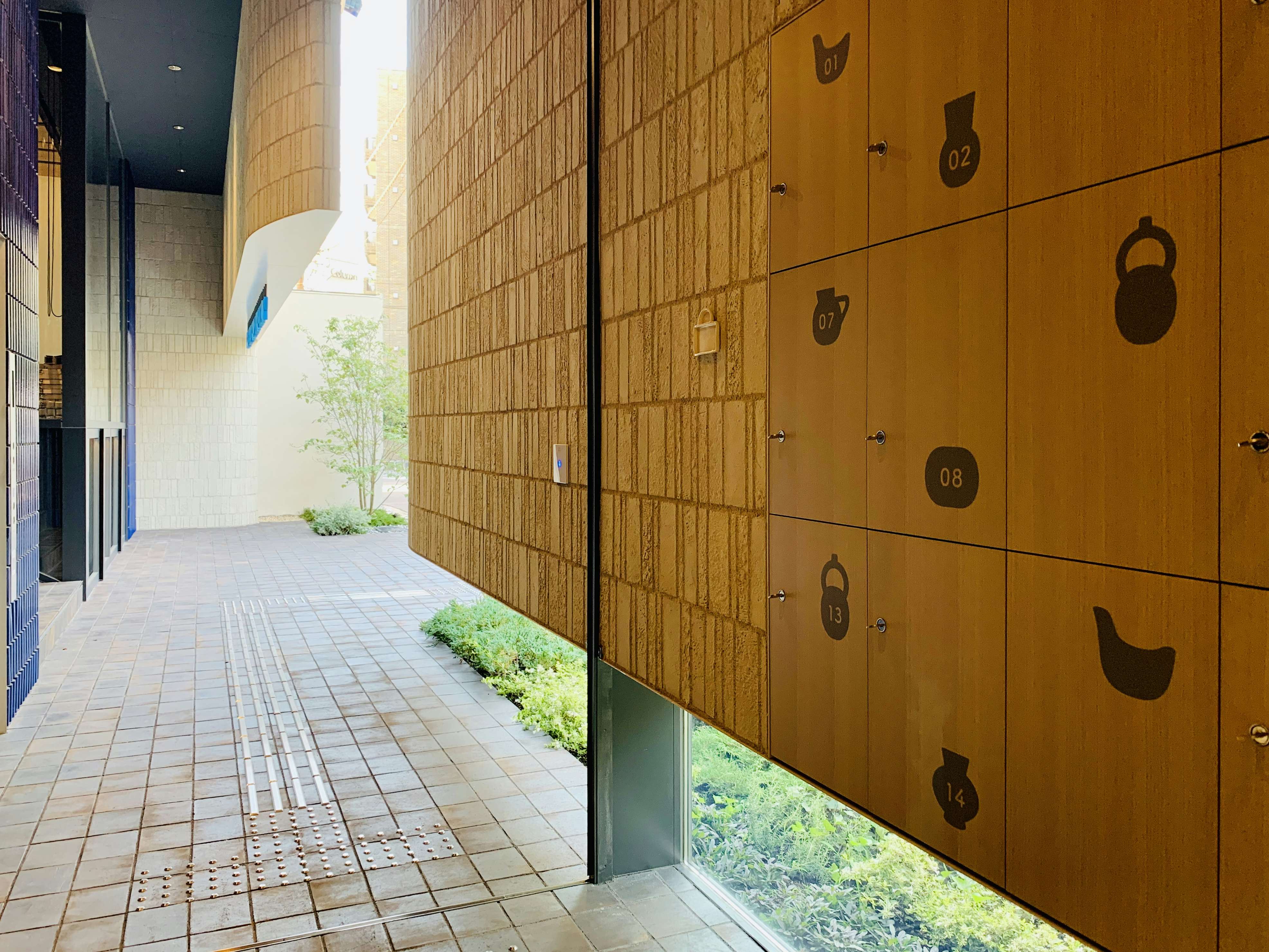 エントランスにあるロッカー。セラミック作品をイメージしたイラストが描かれている