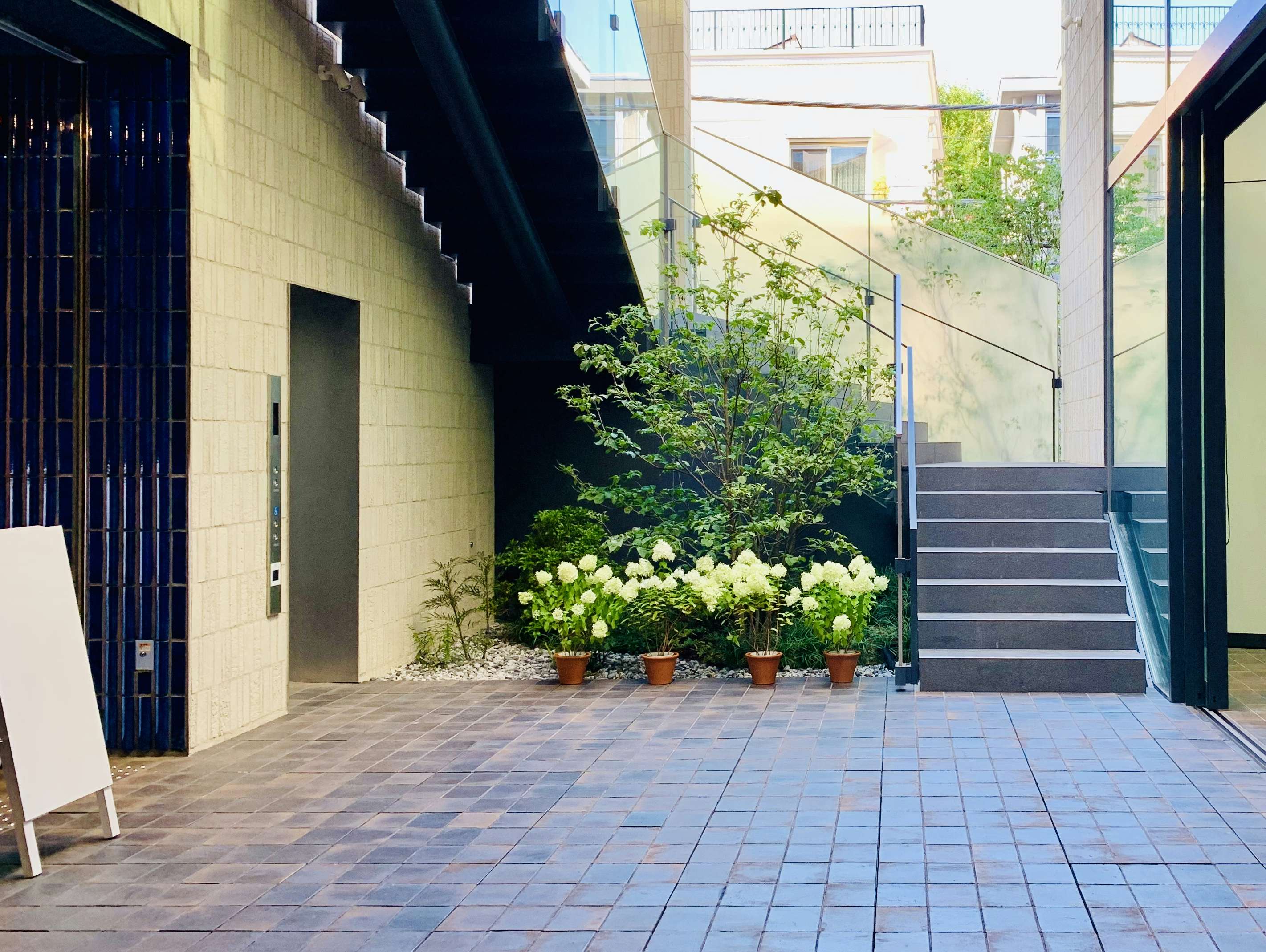 1階の中庭にはハナミズキの木が植えられている