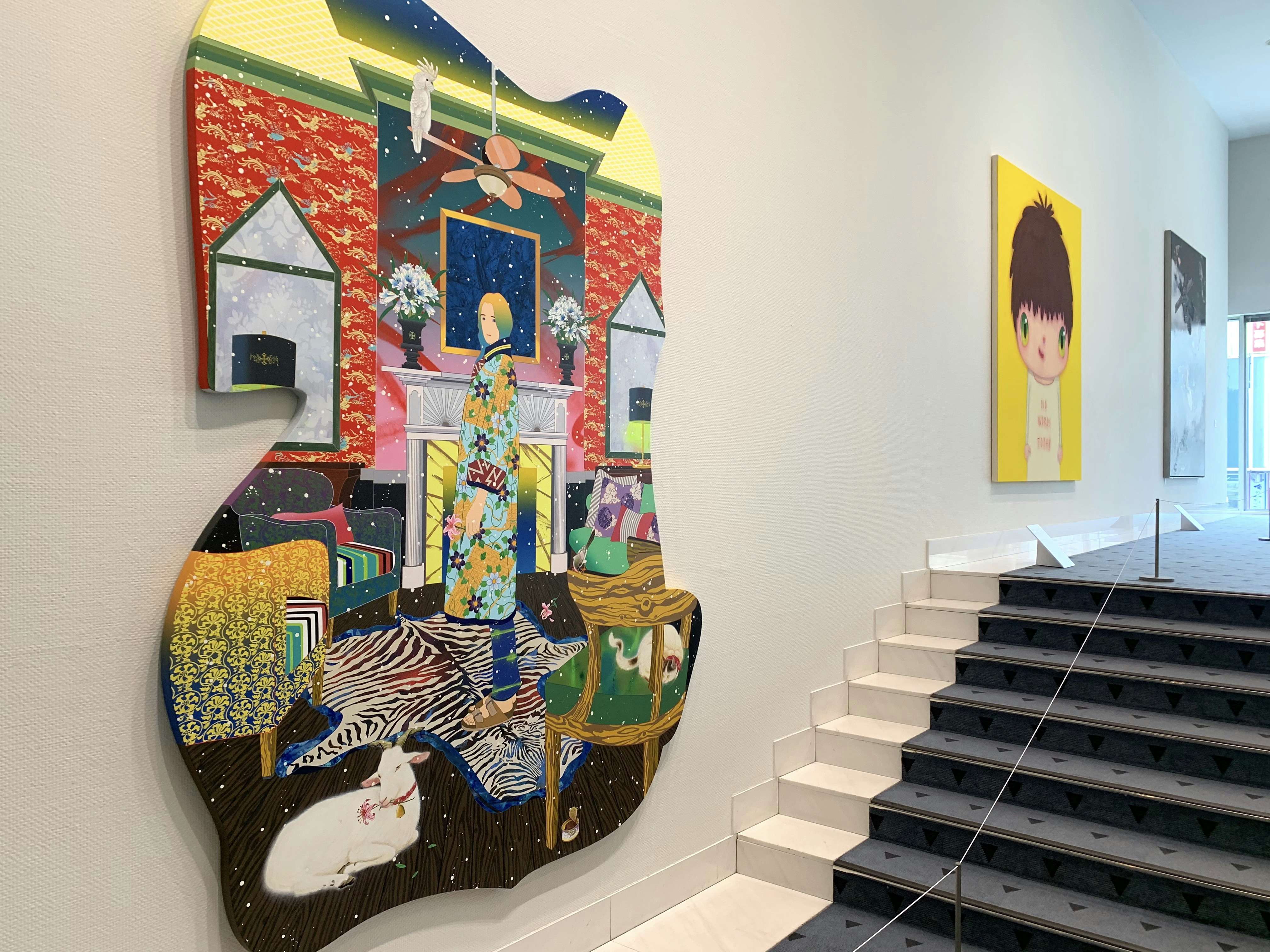 展示風景より、左からスターリング・ルビー《VERT.PROUN》(2018)《Basin Theology/DiPT》(2014)、奈良美智《Collage of Previously Unreleased Drawing II》(2013)、村上隆《Mr. DOB Comes to Play His Flute》(2013) © 2013 Takashi Murakami/Kaikai Kiki Co., Ltd. All Rights Reserved. Courtesy Perrotin