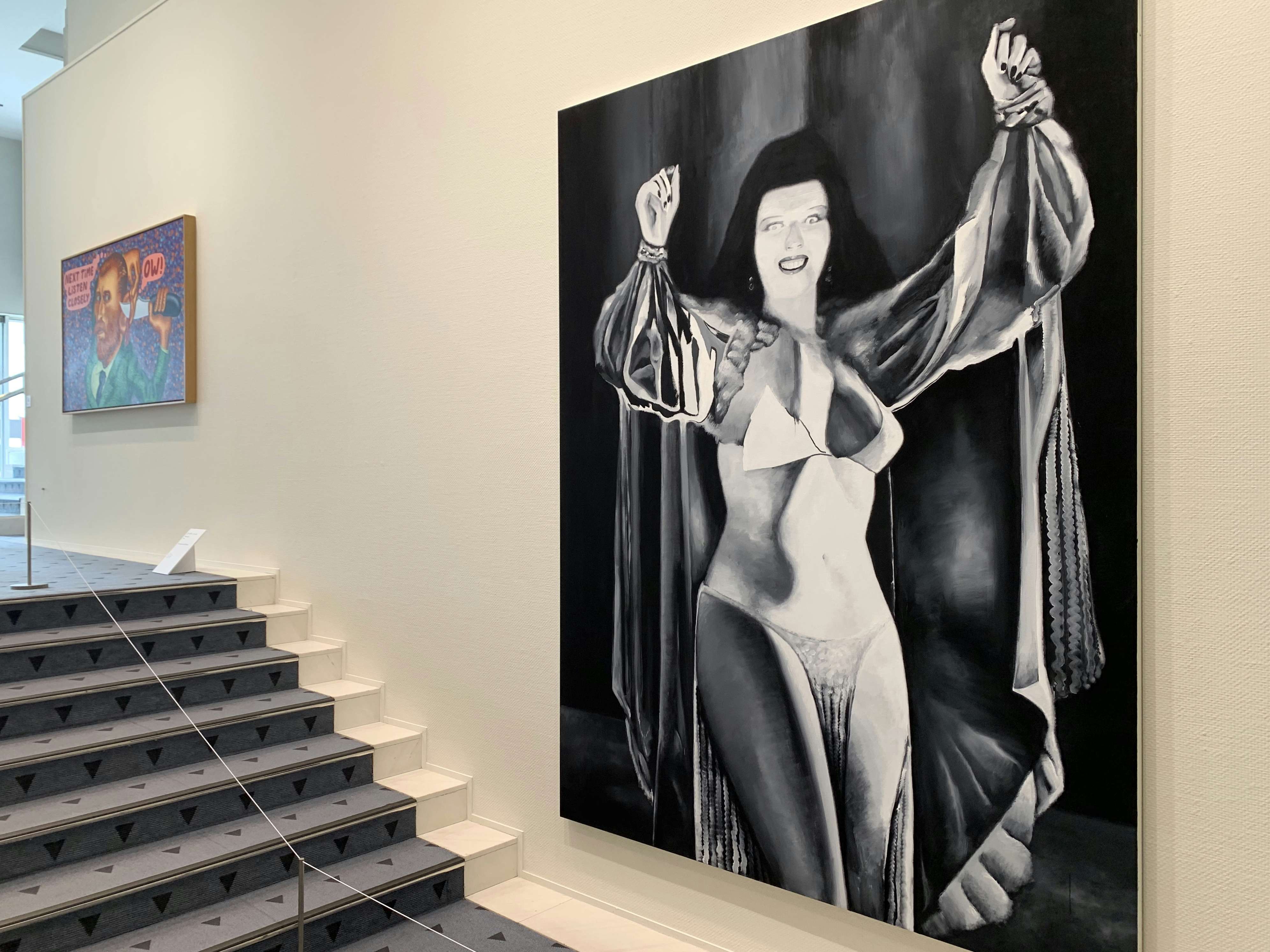 展示風景より、右は五木田智央《Come Play With Me》(2018)
