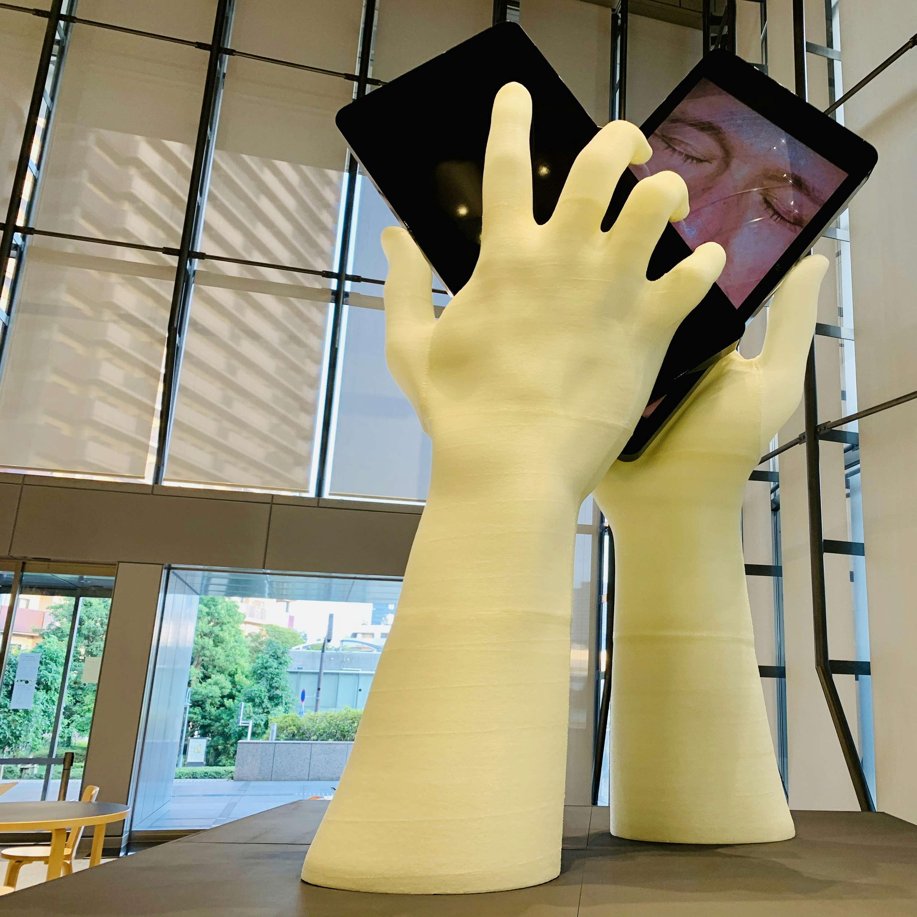 展覧会のために来日したエキソニモの千房けん輔は、本展を振り返りこう語る。「リアルな展覧会でモノが実際に見えるということは、やはり体験として違う。データというのは、結局モノがないと存在できない。それを強く実感する機会となった。オンラインの活動が増え、加速するなか、自分たちが昔からやってきたインターネットアートは見直されるのではないか。いまはアートフェアなどをはじめ、オンラインで作品を展示する機会も増えているが、どうしても『本物じゃない』感じが出てしまう。そうしたとき、『ネット上でしかリアリティがないもの』が探求されると思うし、逆境だからこそそれが楽しみだ」。