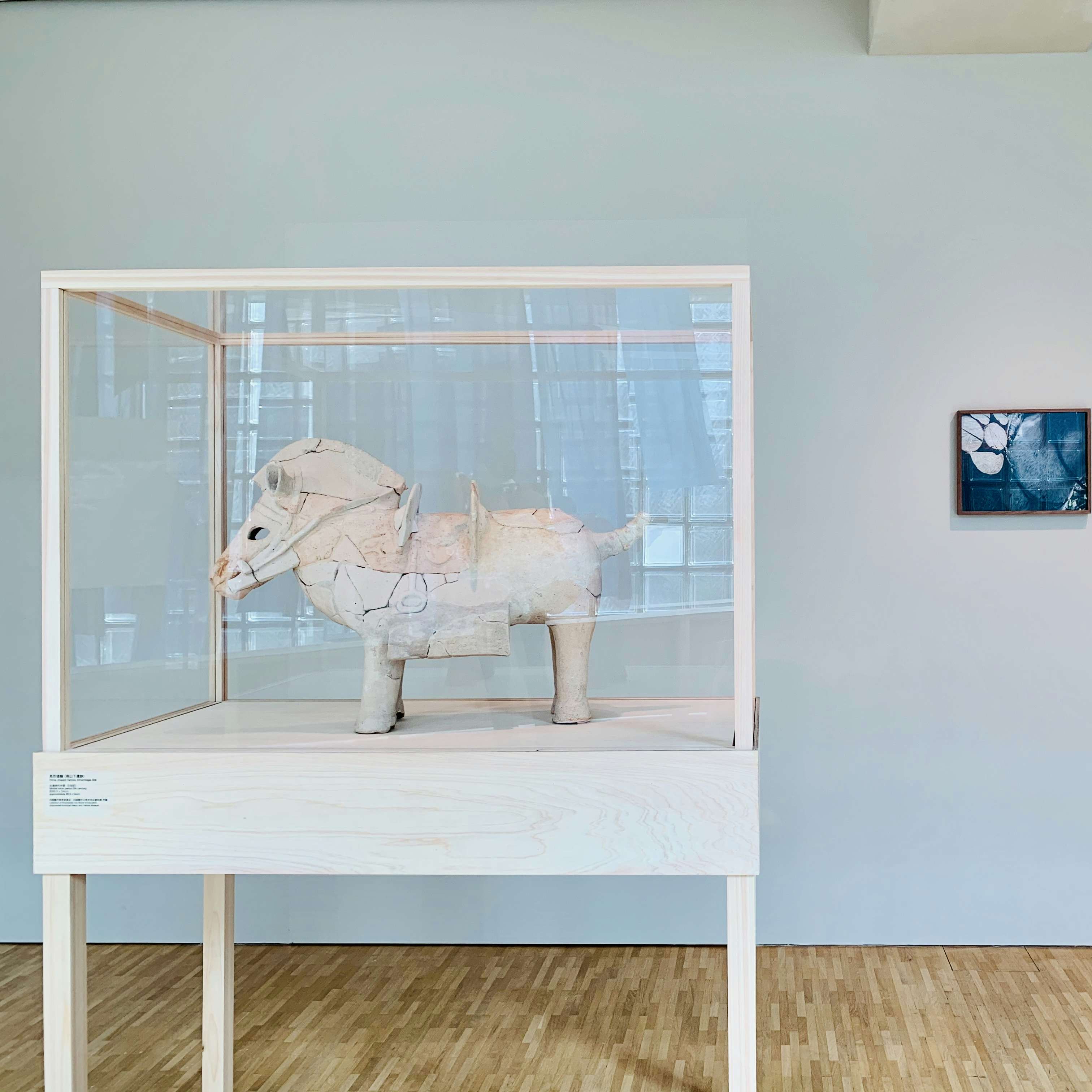 展示作品の主人公となるのは馬だ。デュマが「見つけた時、電流に撃たれたような衝撃を受けた」という古墳時代中期のふたつの馬形埴輪や、展覧会タイトルにある馬のベゾアール(胃結石)の実物などとともに、多くの馬を被写体とした写真作品が並ぶ。