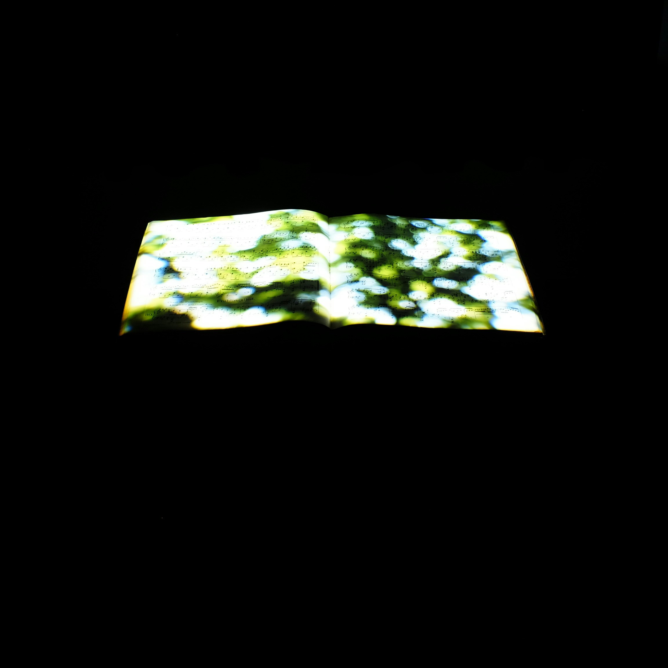 映像による光を使って、忘れ去られるものを捕らえようとする志村信裕。書斎に展示された《光の曝書(メンデルスゾーンの楽譜)》(2020)は、朝香宮が実際に所有していた楽譜に庭園で撮影した映像を投影することで、館の記憶を現前によみがえらせる。