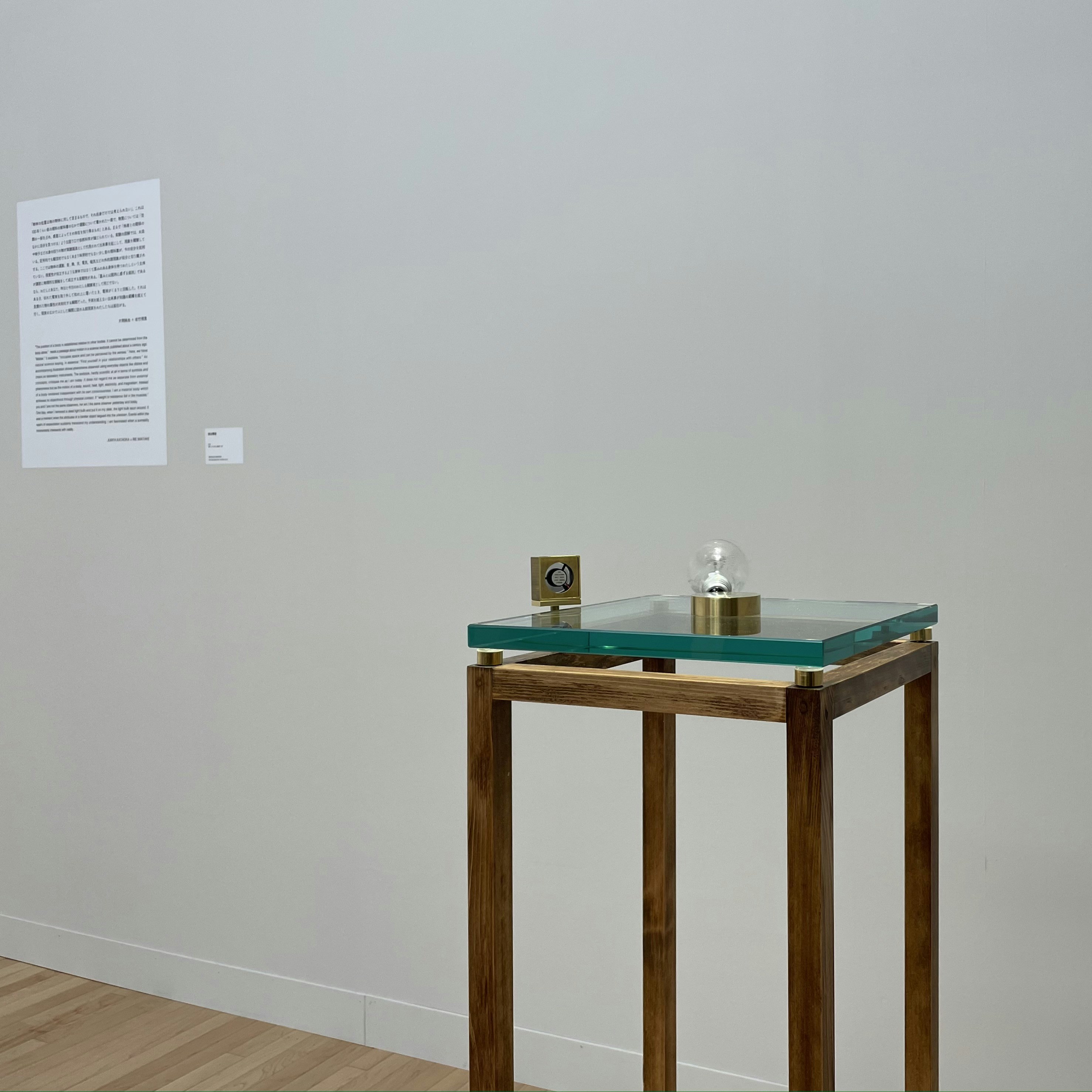 展覧会の冒頭部に登場したのは、アーティスト・デュオの片岡純也+岩竹理恵による「動き」のあるインスタレーション《回る電球》。外した電球を机に置いたときの回転から着想を得た同作は、さりげない一瞬の動きを反復することで、物体の運動や磁力などの自然現象を再現する。