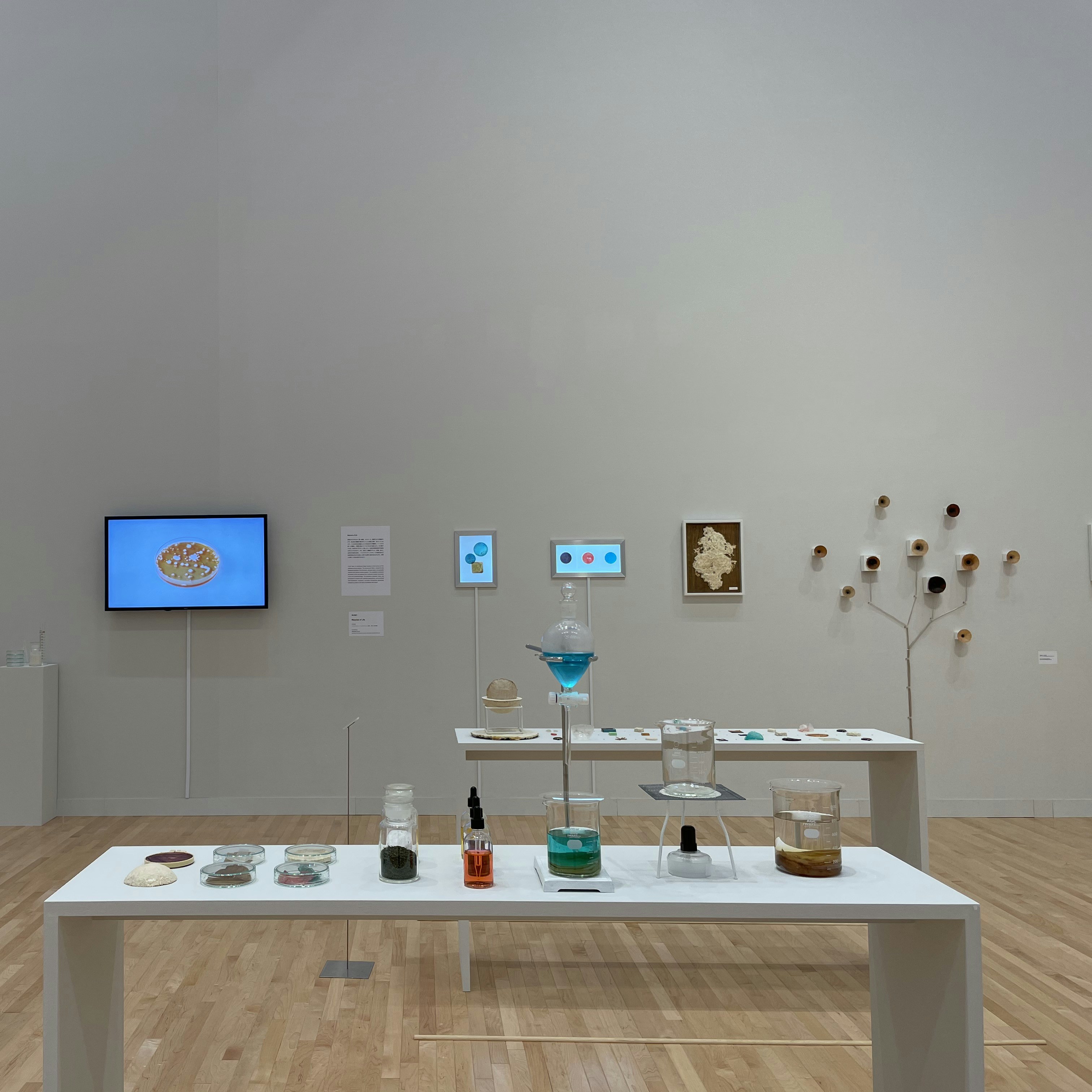 微生物、細胞、DNA、有機物などのミクロの世界から植物、自然、地球全体におけるマクロの現象を可視化する作品を制作している清水陽子。本展では、その過去のプロジェクトから現在進行中のプロジェクトまで、6つのシリーズを写真、映像、資料、理化学機器などを用いて展示している。