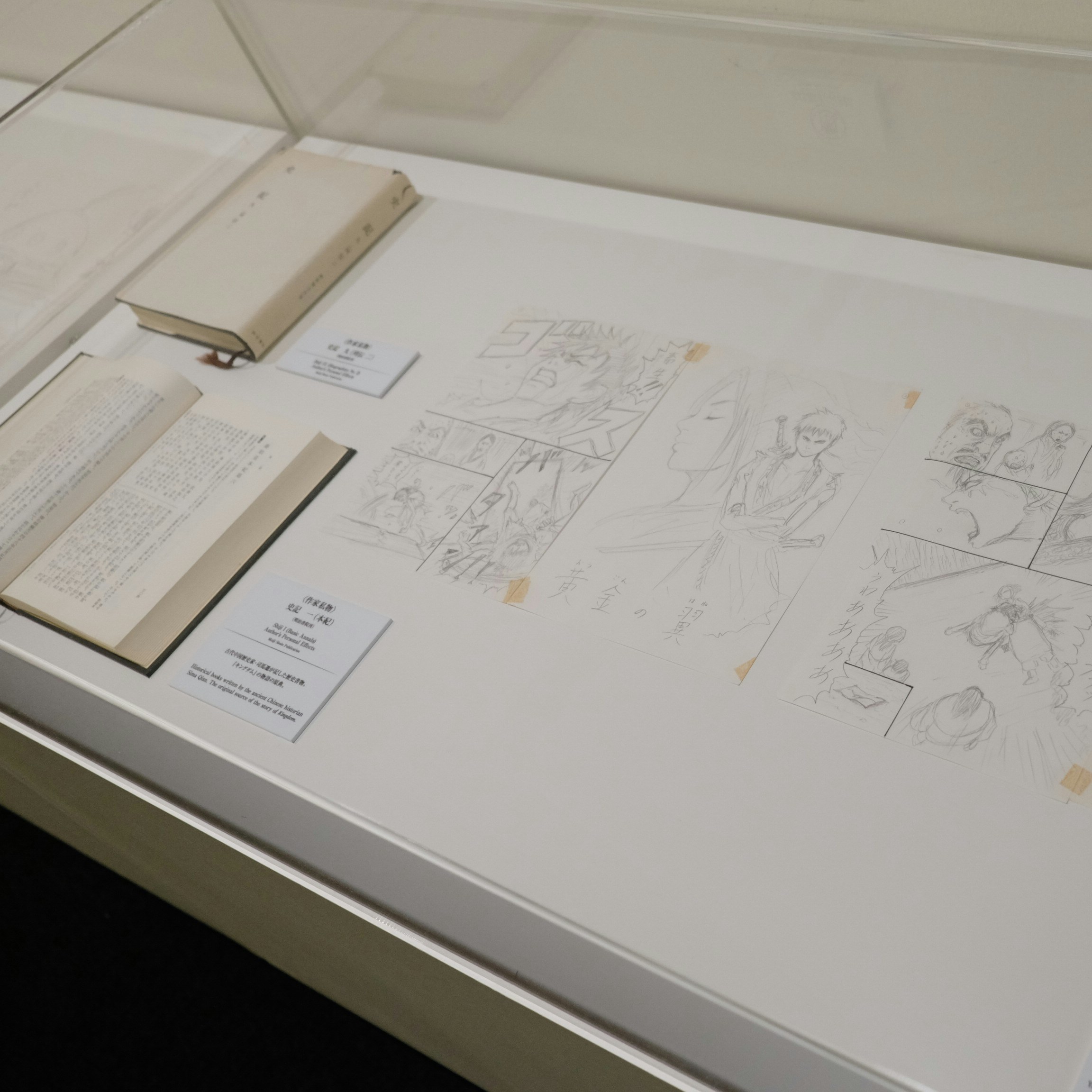 同展では、豊富な原画を展示するのみならず、キャラクターの姿やセリフを大型パネルにプリントして展示。物語の象徴的なシーンをダイナミックに見せる工夫がなされている。物語の始まりにして原点である原作冒頭を紹介する第0章「無名の少年」では、戦災孤児であった信と漂のふたりが夢を語り合い、そして別れるまでの原画を展示する。