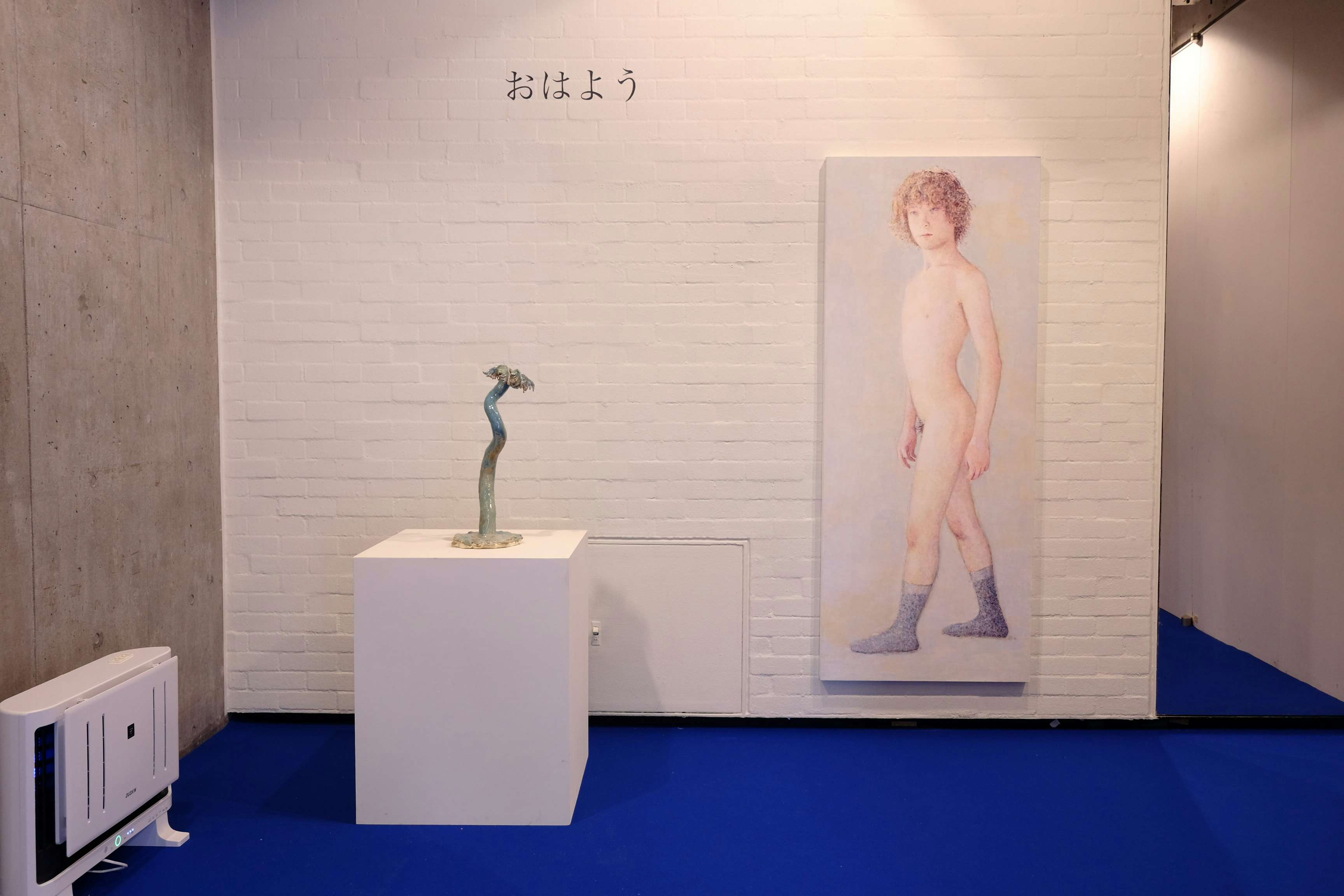 「梅津庸一 ポリネーター」展示風景より、右が梅津庸一《ポリネーター》(2021)