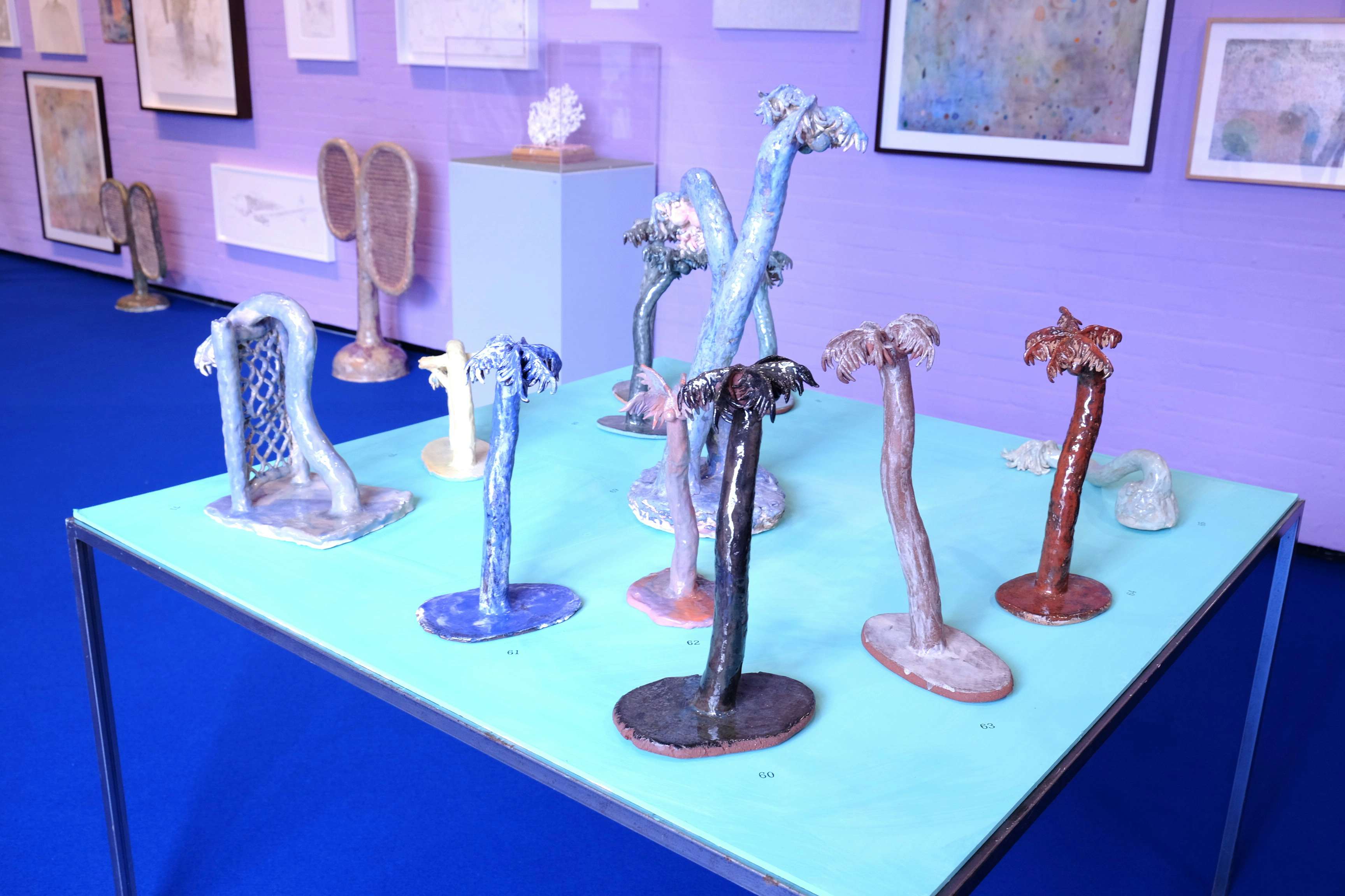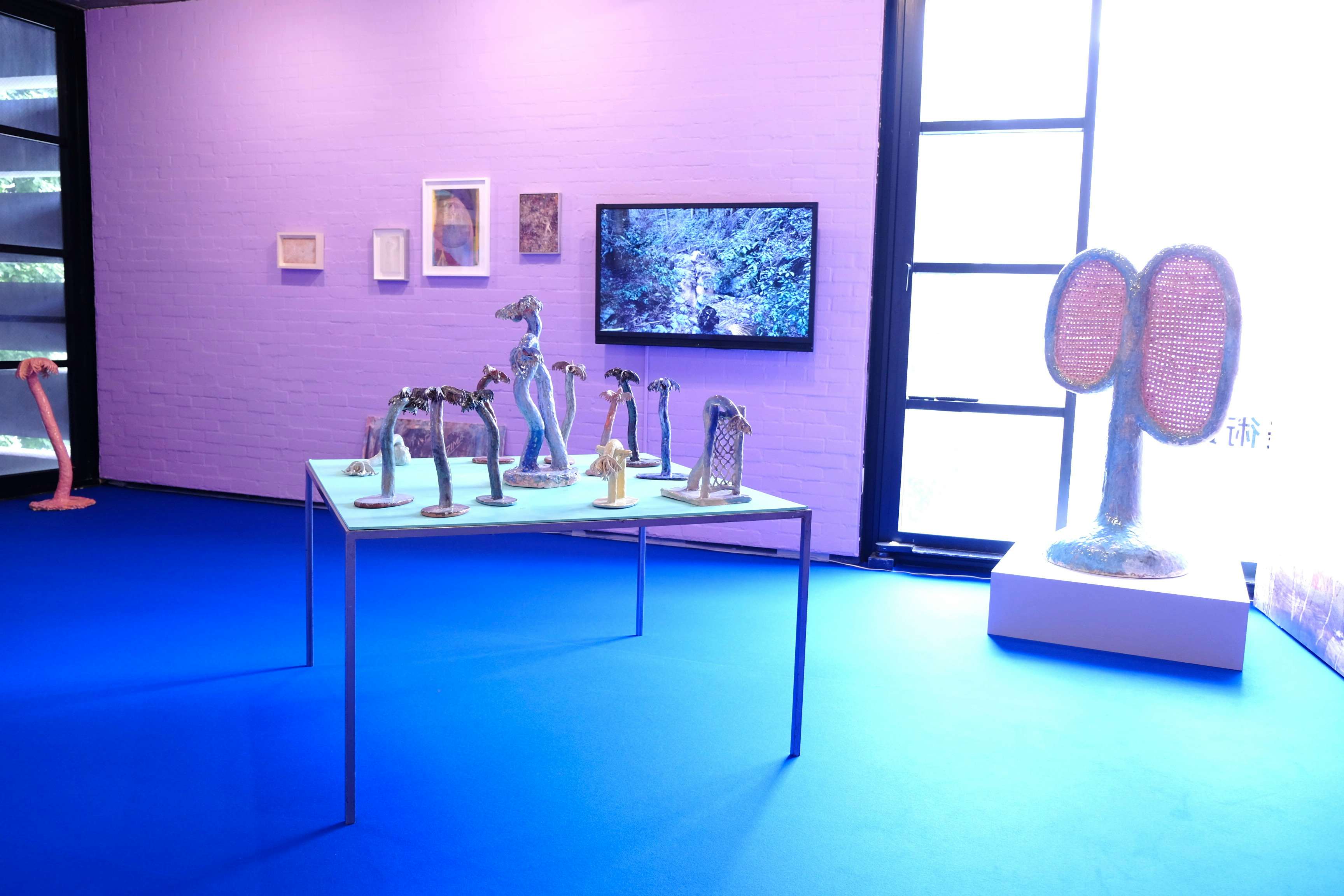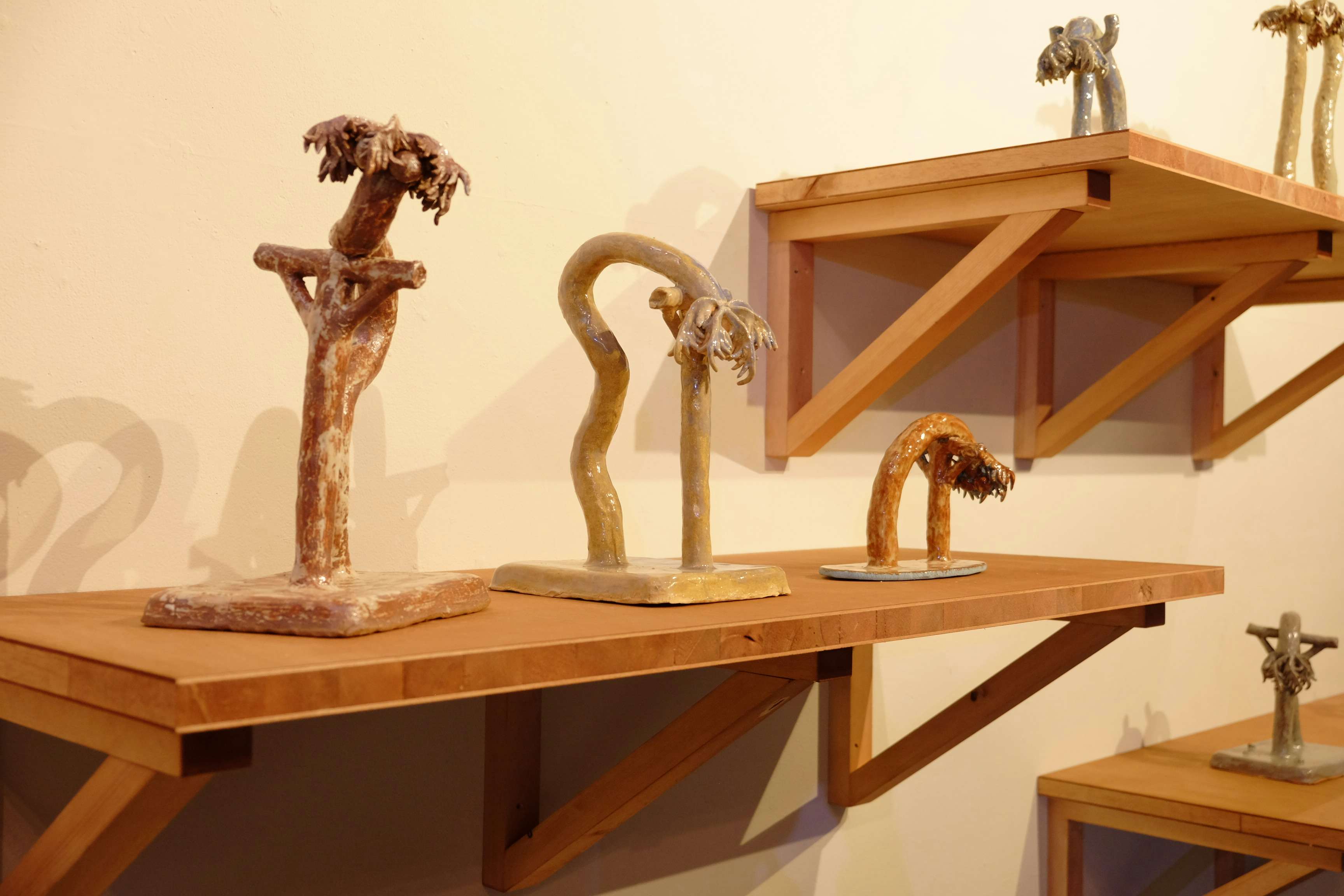 「梅津庸一 ポリネーター」展示風景より、「パームツリー」シリーズ(2021)