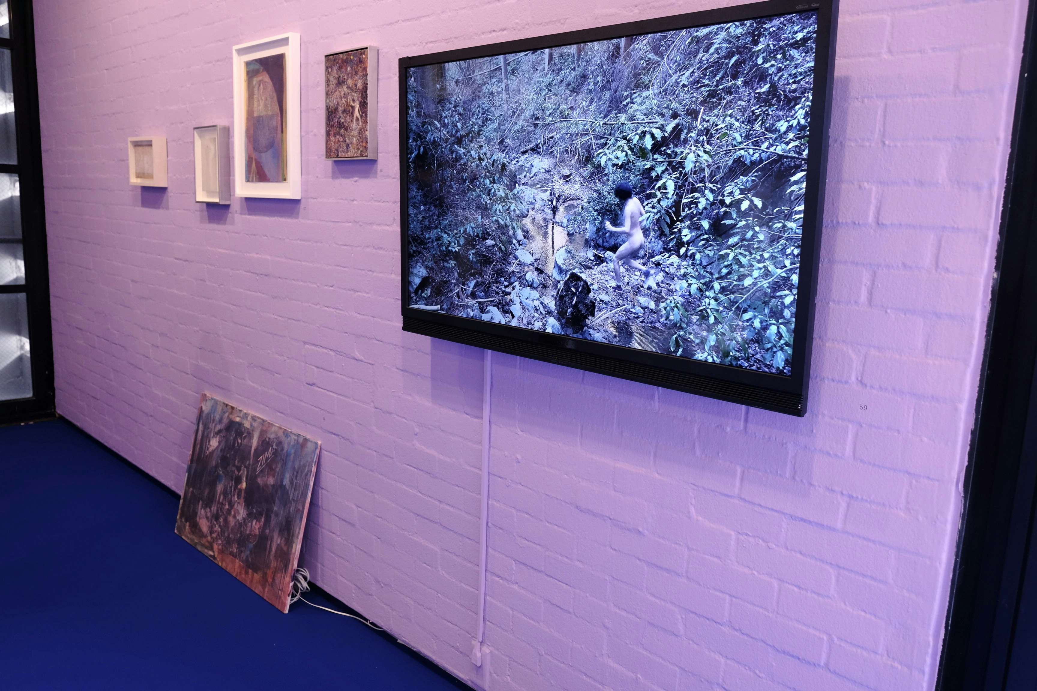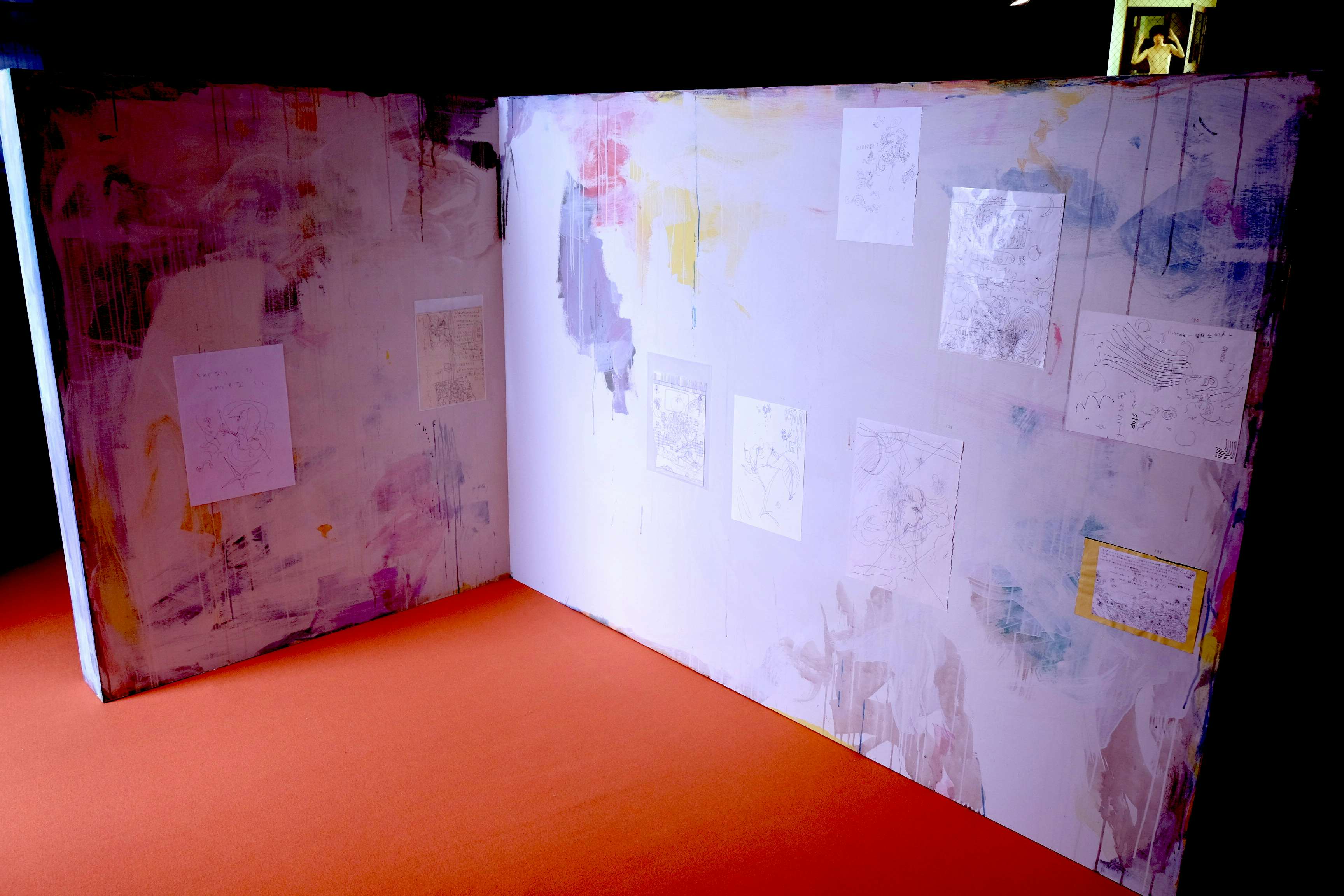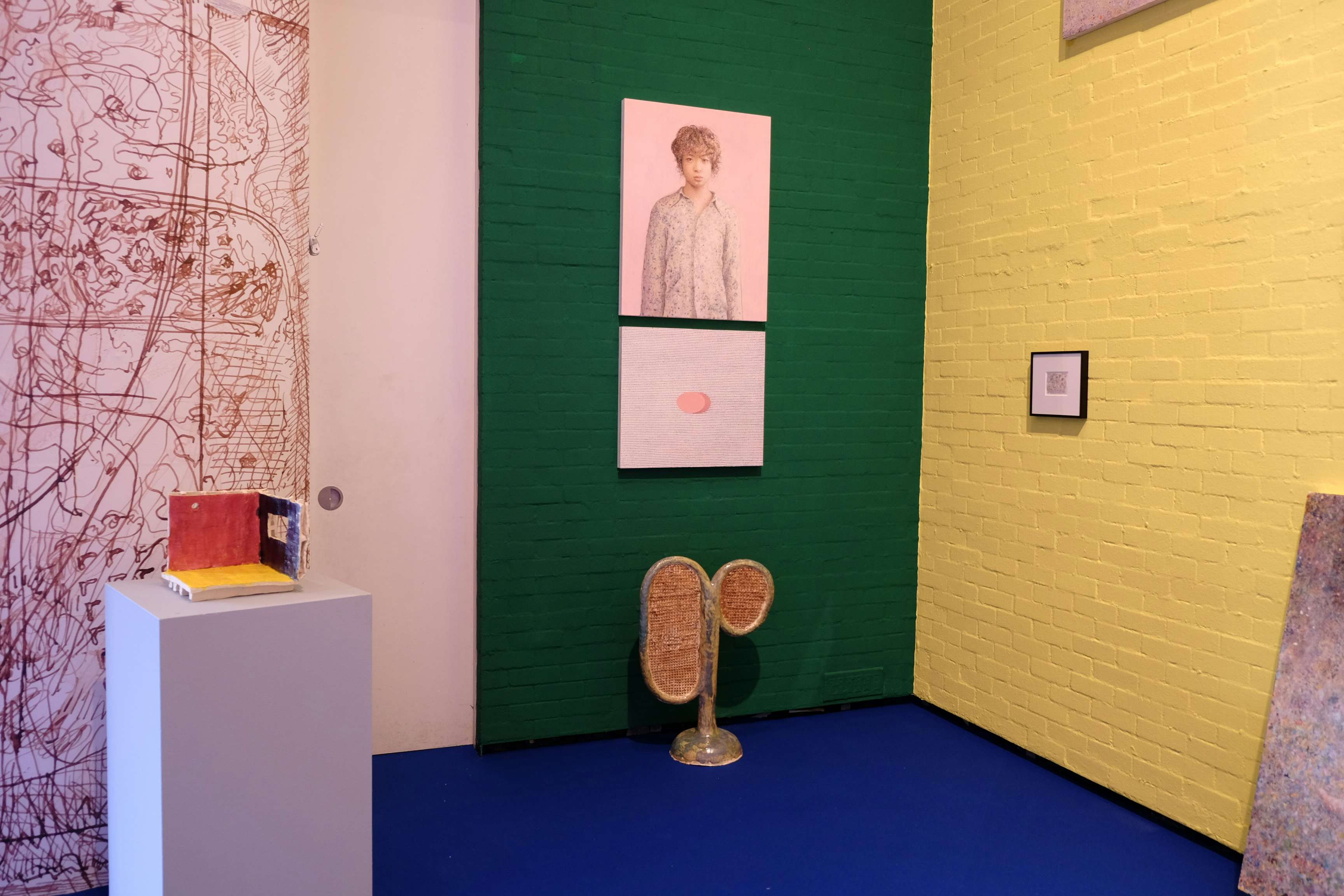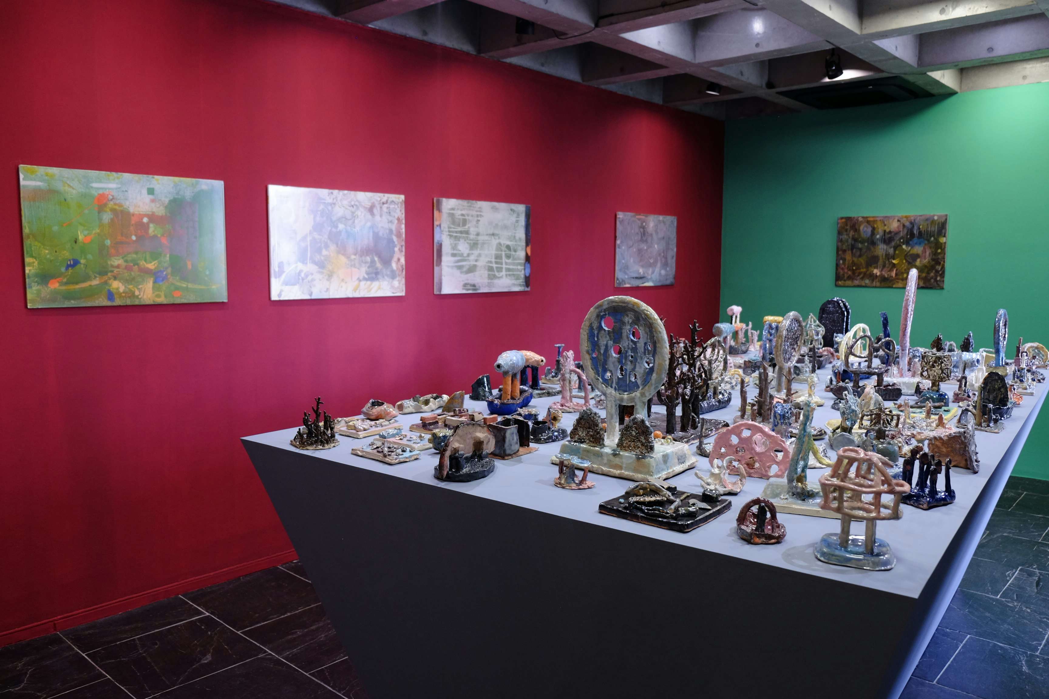 「梅津庸一 ポリネーター」展示風景より、梅津庸一《内なるスタジオ》(2021)