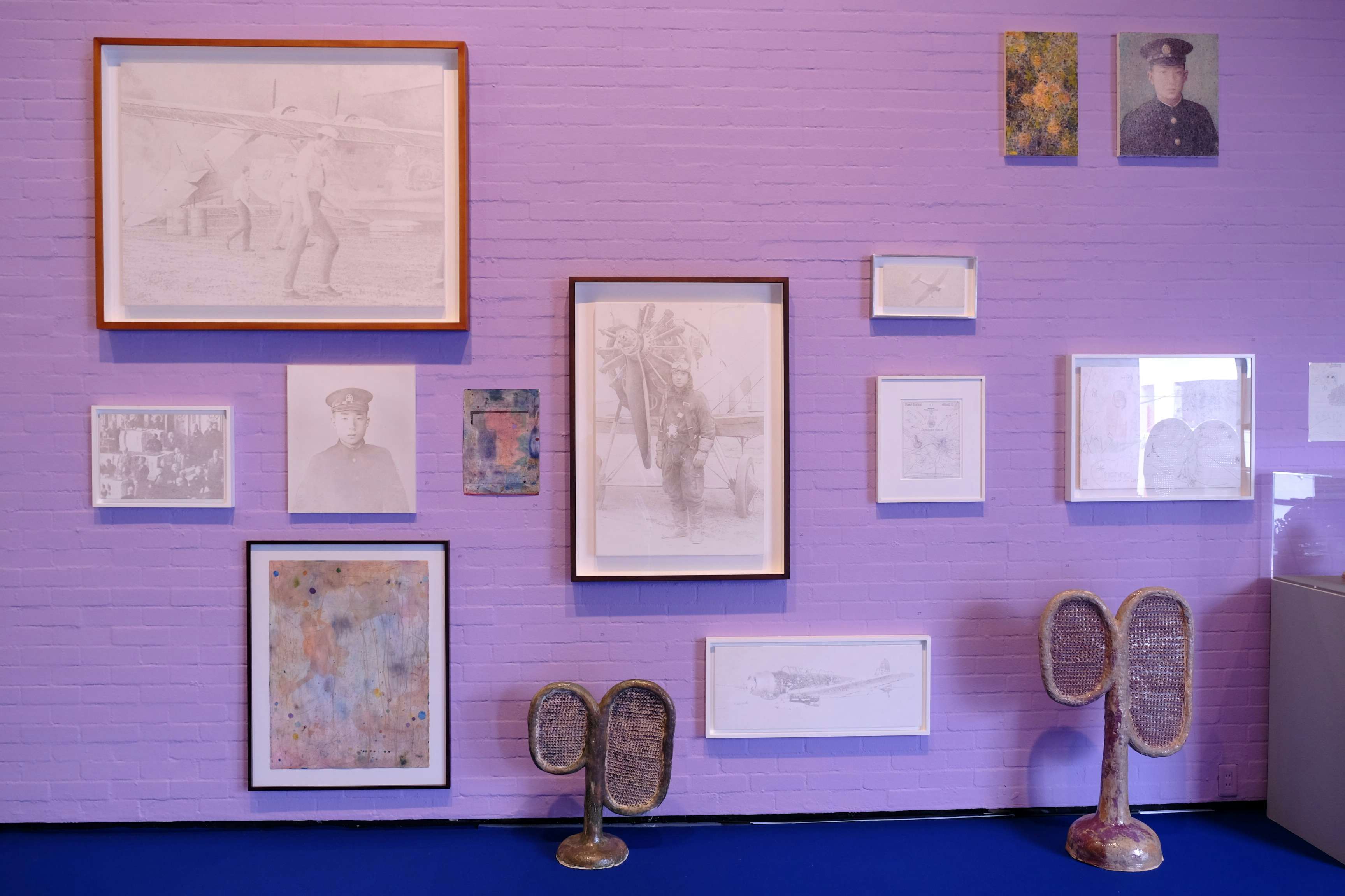 「梅津庸一 ポリネーター」展示風景より、中央が梅津庸一《霞ヶ浦航空飛行基地》(2006)