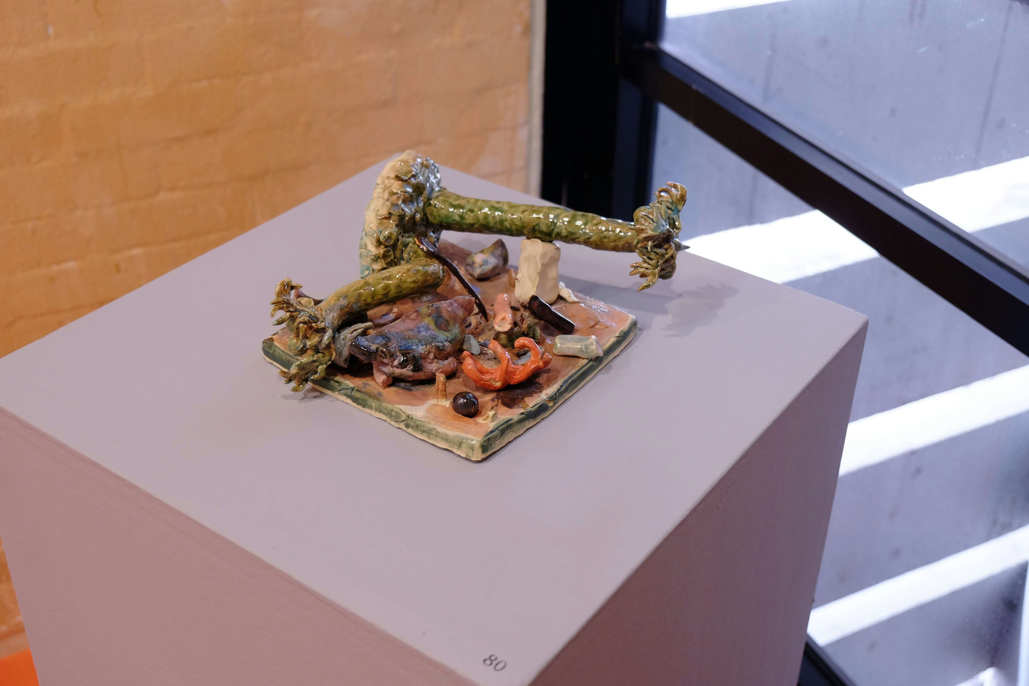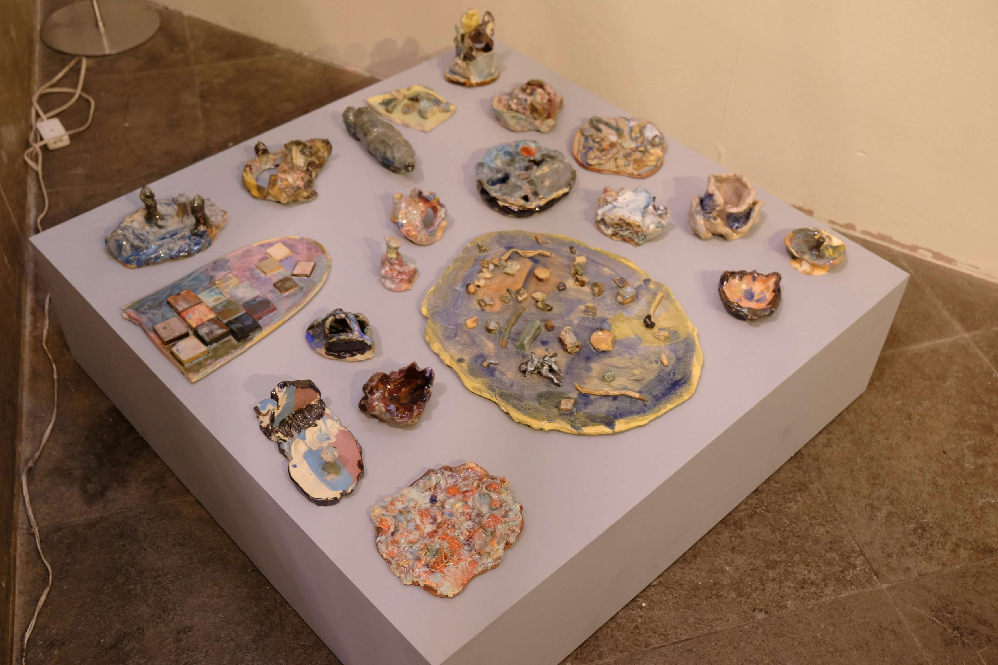 「梅津庸一 ポリネーター」展示風景より、梅津庸一《皿》(2005,2010)