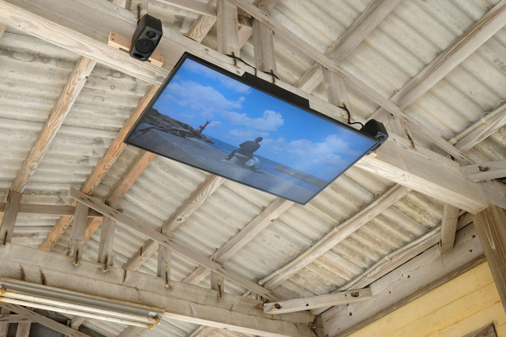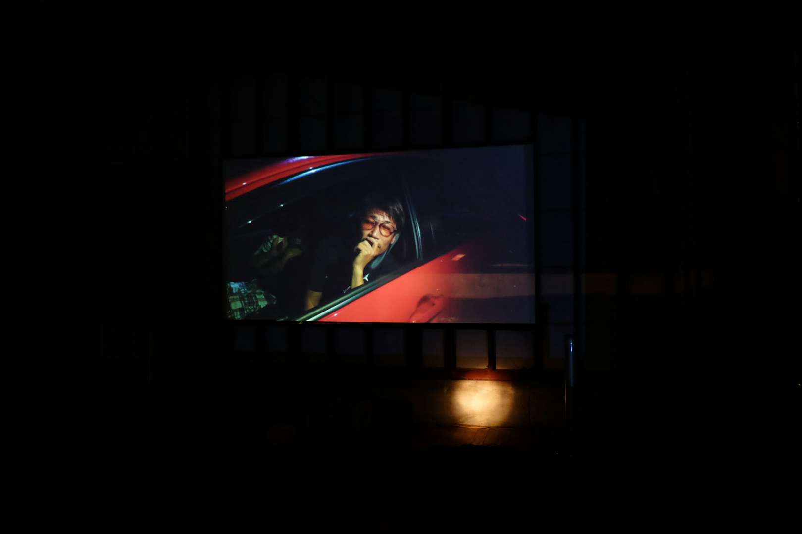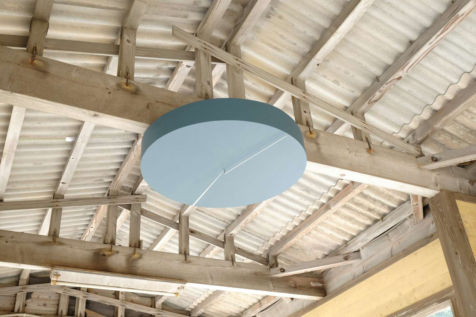 荷捌き場の天井には、映像のモニターと15秒を刻むたびに音が鳴るタイマーがともに設置されている。モニターに映しだされているのは、漁港の防波堤の上でバスドラムを15秒感覚で鳴らす人々の映像だ。映像はタイマーと同じタイミングで流れるので、正確な15秒と人々が自身の感覚で鳴らす15秒とのズレが、視覚と音で認知される。