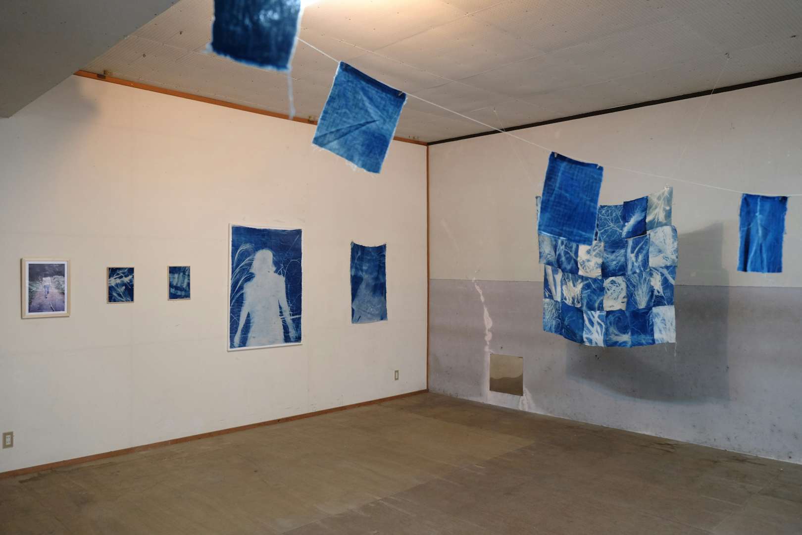 1階の展示は田中良佑によるもの。田中は明智光秀の三女で細川忠興の正室である細川ガラシャが幽閉されていた味土野地区でレジデンスを行ってきた。一度は廃村になったものの、その後は数人の移住者によって存続しているこの地区を題材に、2019、20、そして21年の各年に制作した作品を集めたのが《降り積もる影》だ。