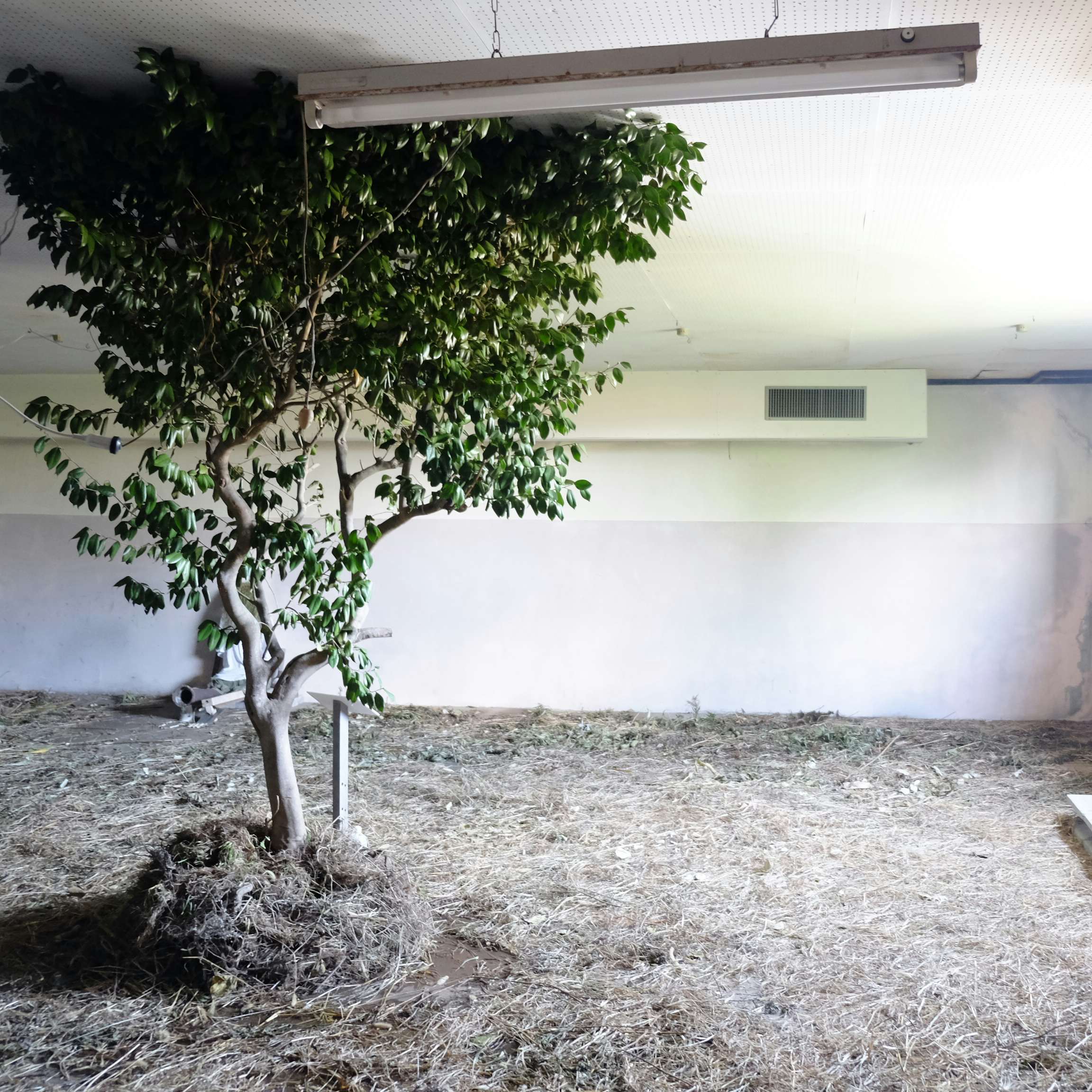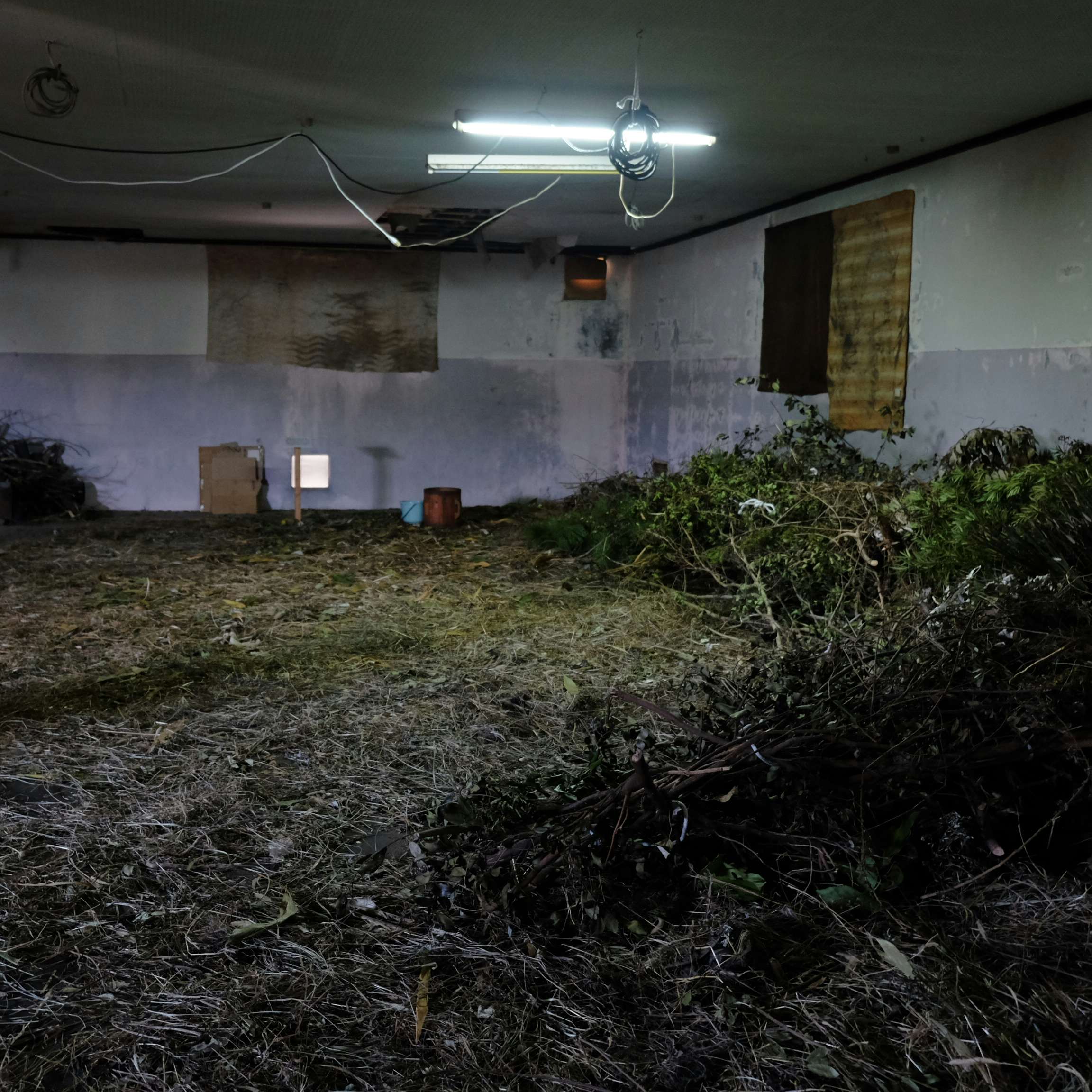 2階部分ではその全面を使って、鷲尾怜がインスタレーションを展開する。鷲尾は作品の構想を練るなか、この工場跡の隣家の庭の雑草が繁茂する様子が気になったという。鷲尾は隣家の住人に許可を得て、庭の芝刈りを決行。刈った芝を展示空間に敷き詰めた。