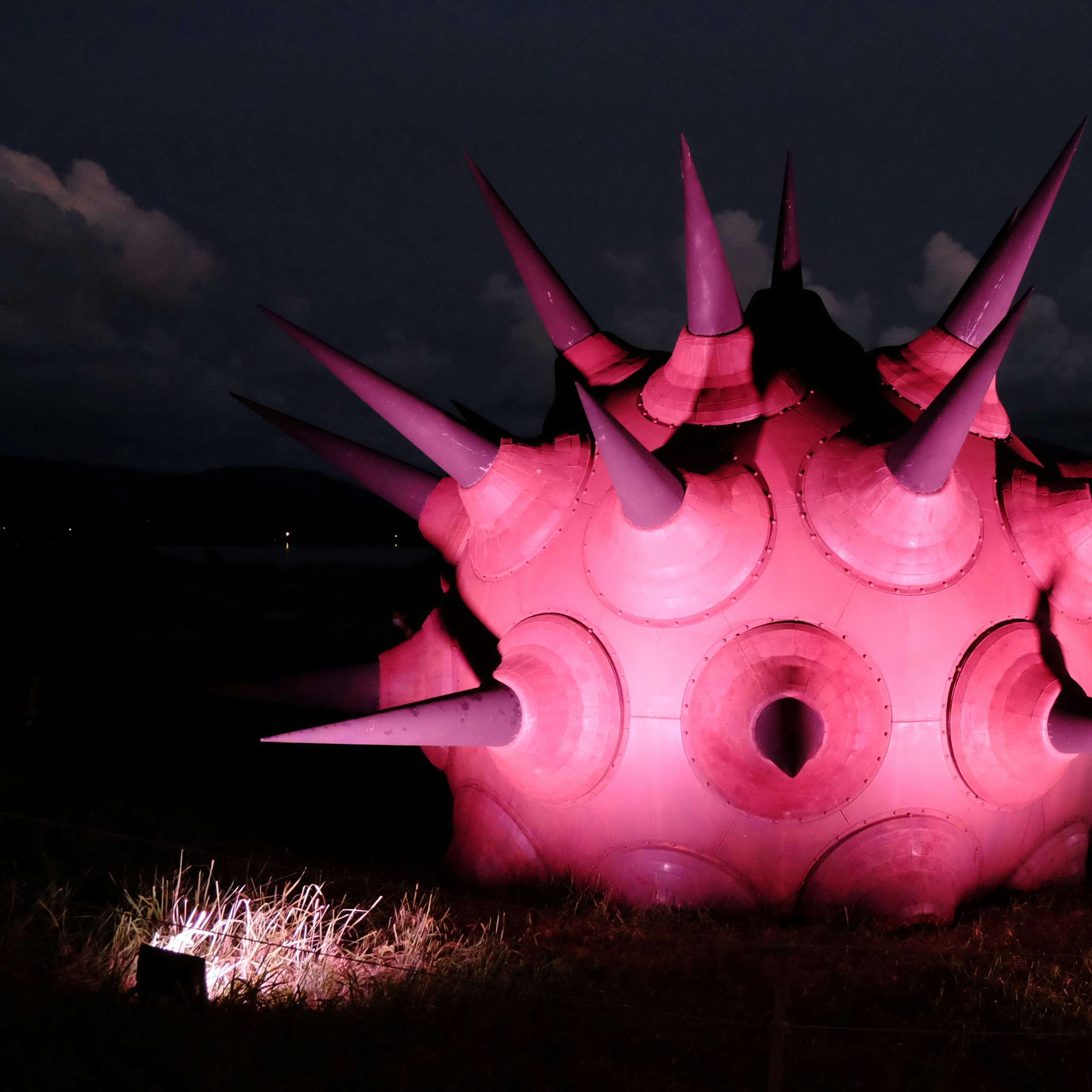 元来、ヤノベの《ラッキードラゴン》は、1954年にマーシャル諸島ビキニ環礁で被爆した遠洋マグロ漁船「第五福竜丸」の英名をモチーフとしたものだが、今回は天橋立にある龍の伝説がインスピレーション源になり、この場所に設置された。11月には、このドラゴンが可動するパフォーマンスも実施される予定だ。