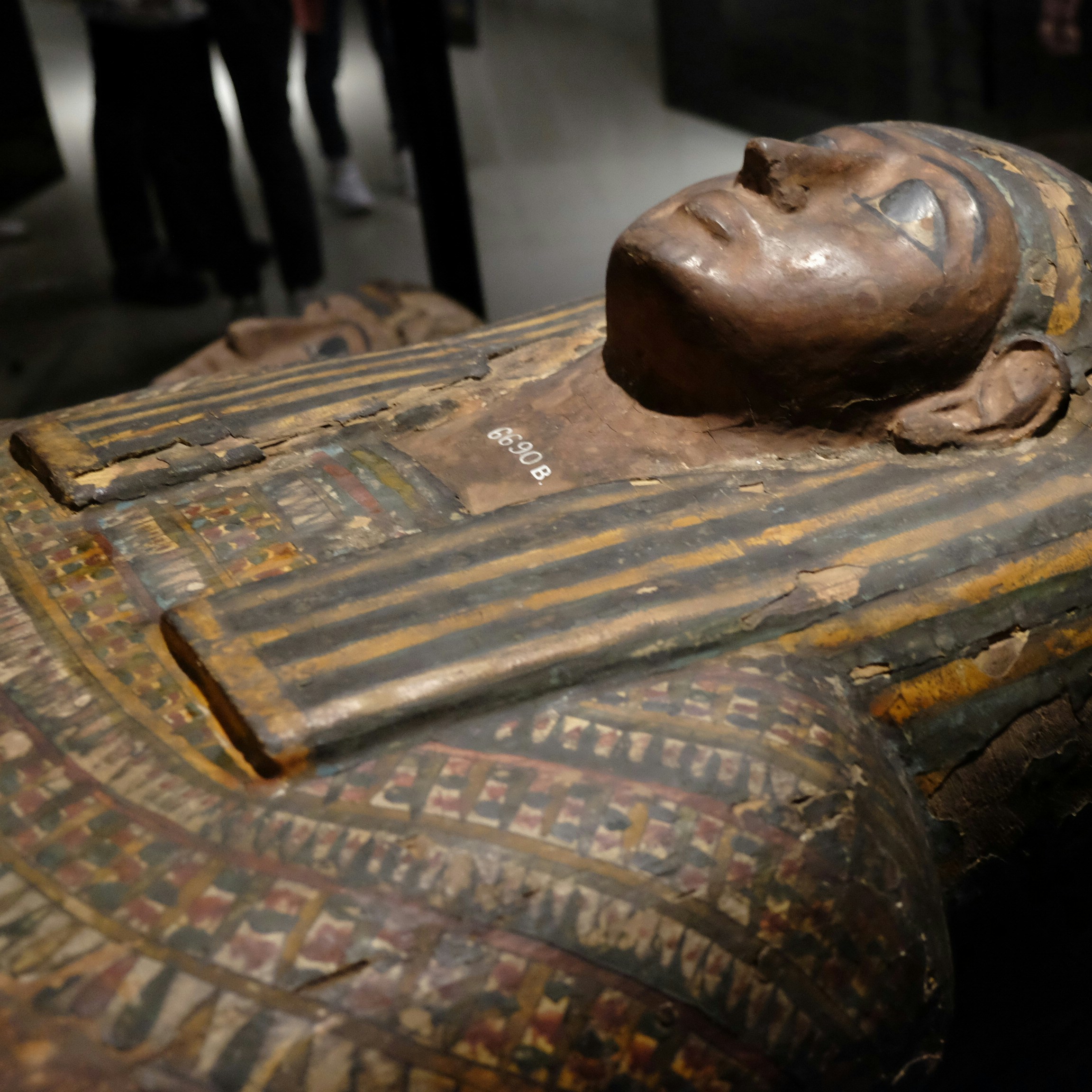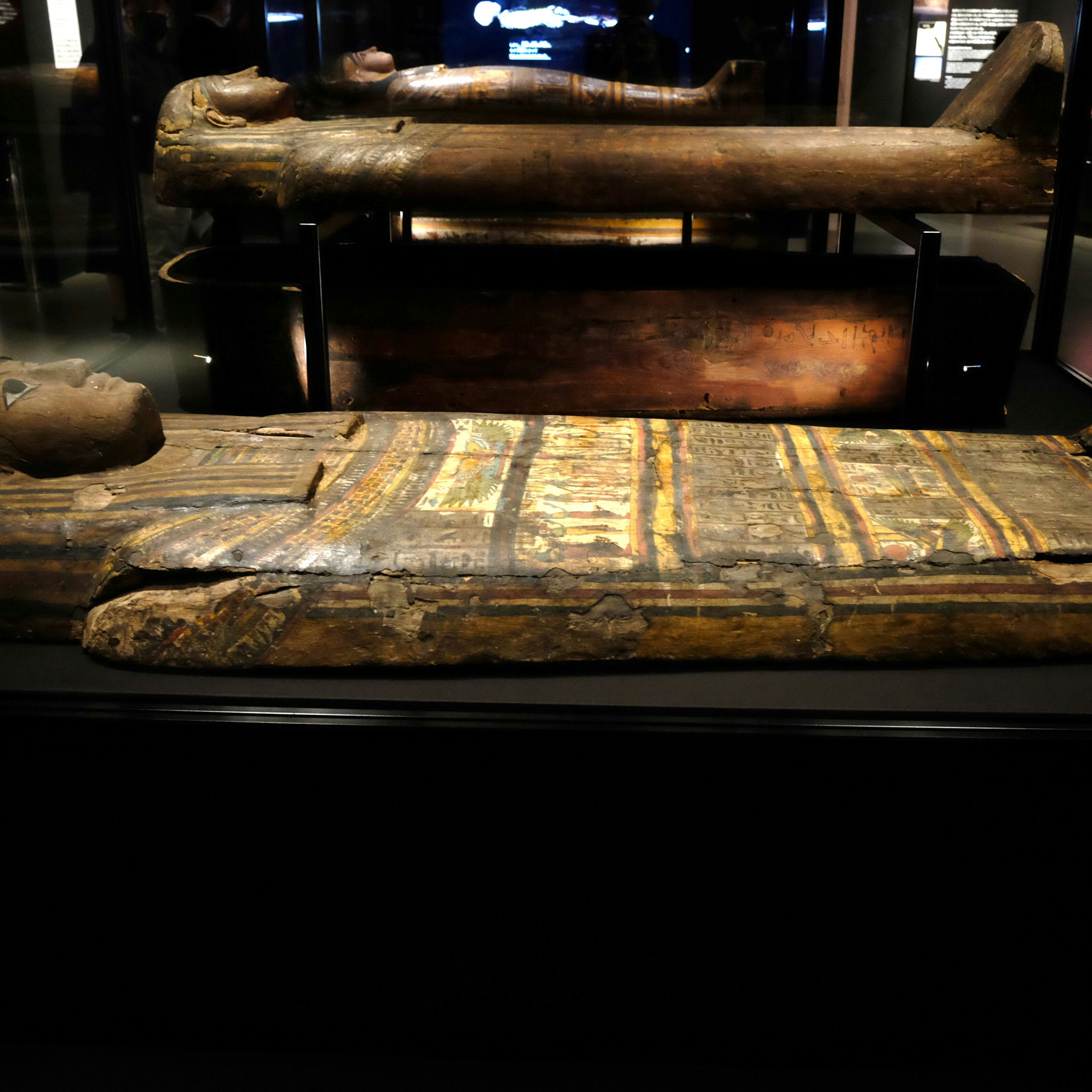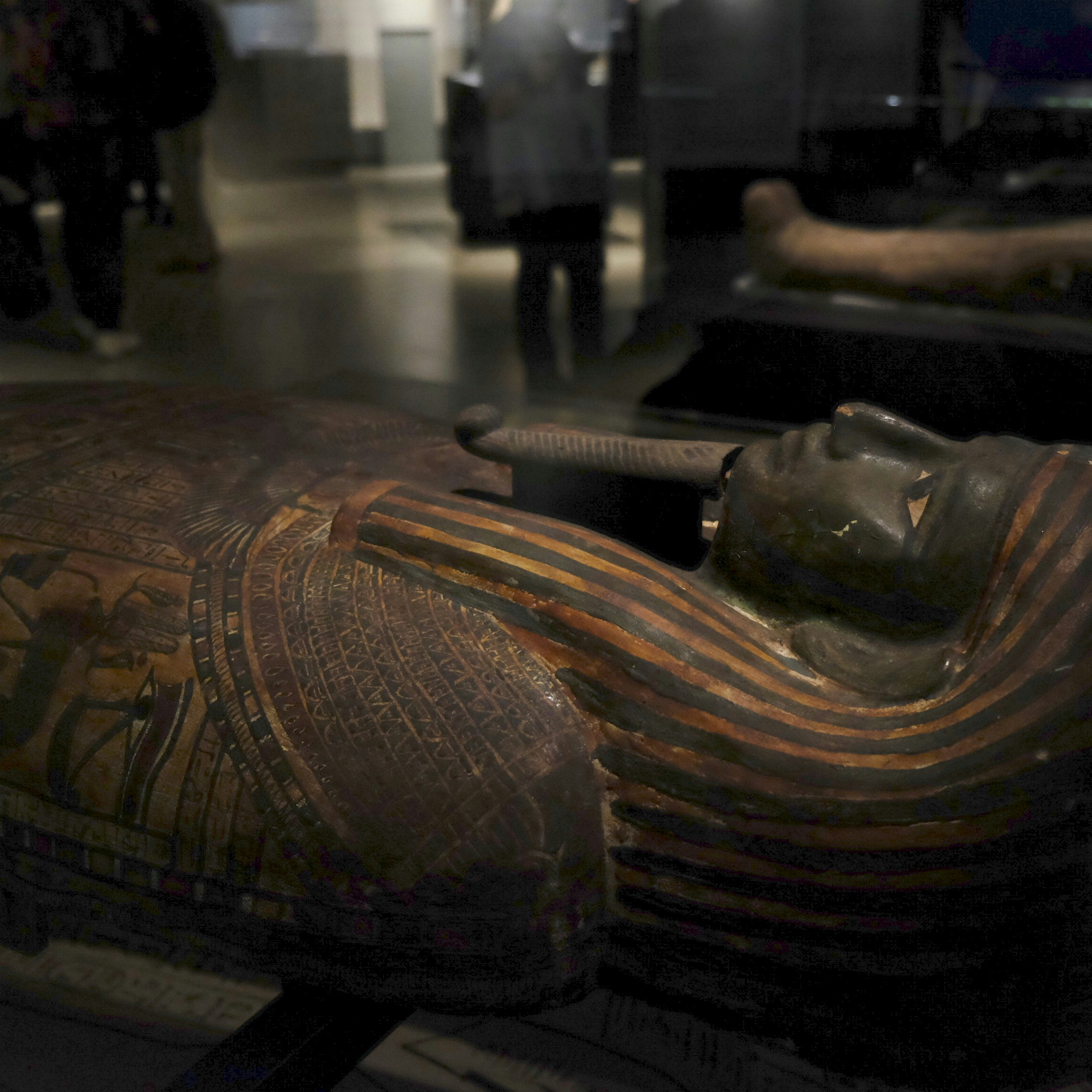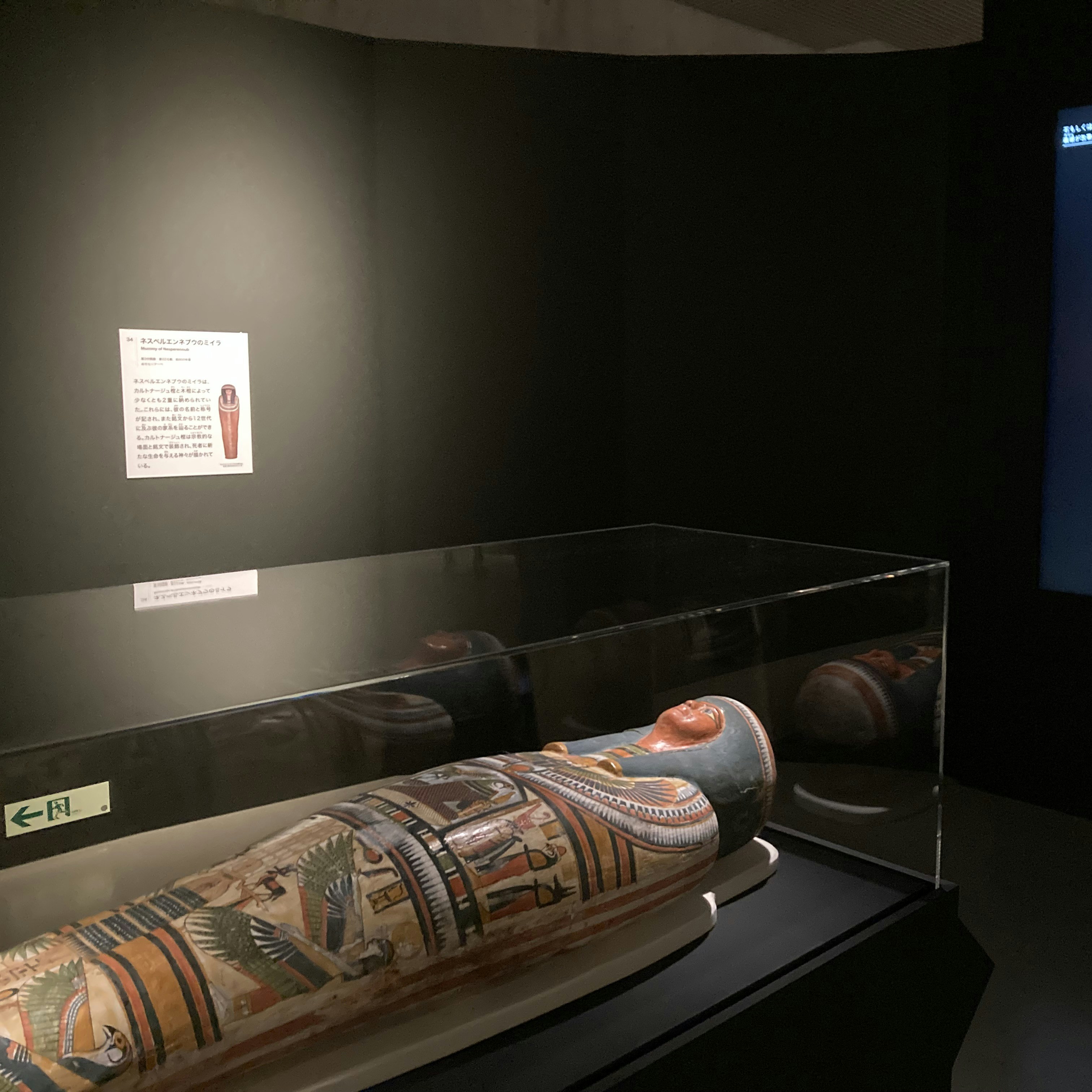 次に展示されるネスペルエンネブウは、大英博物館のなかでもとくに研究されてきたミイラのひとつだ。銘文からはテーベでもっとも重要な宗教施設であるカルナク神殿の神官で、前800年ごろを生きたことがわかっている。