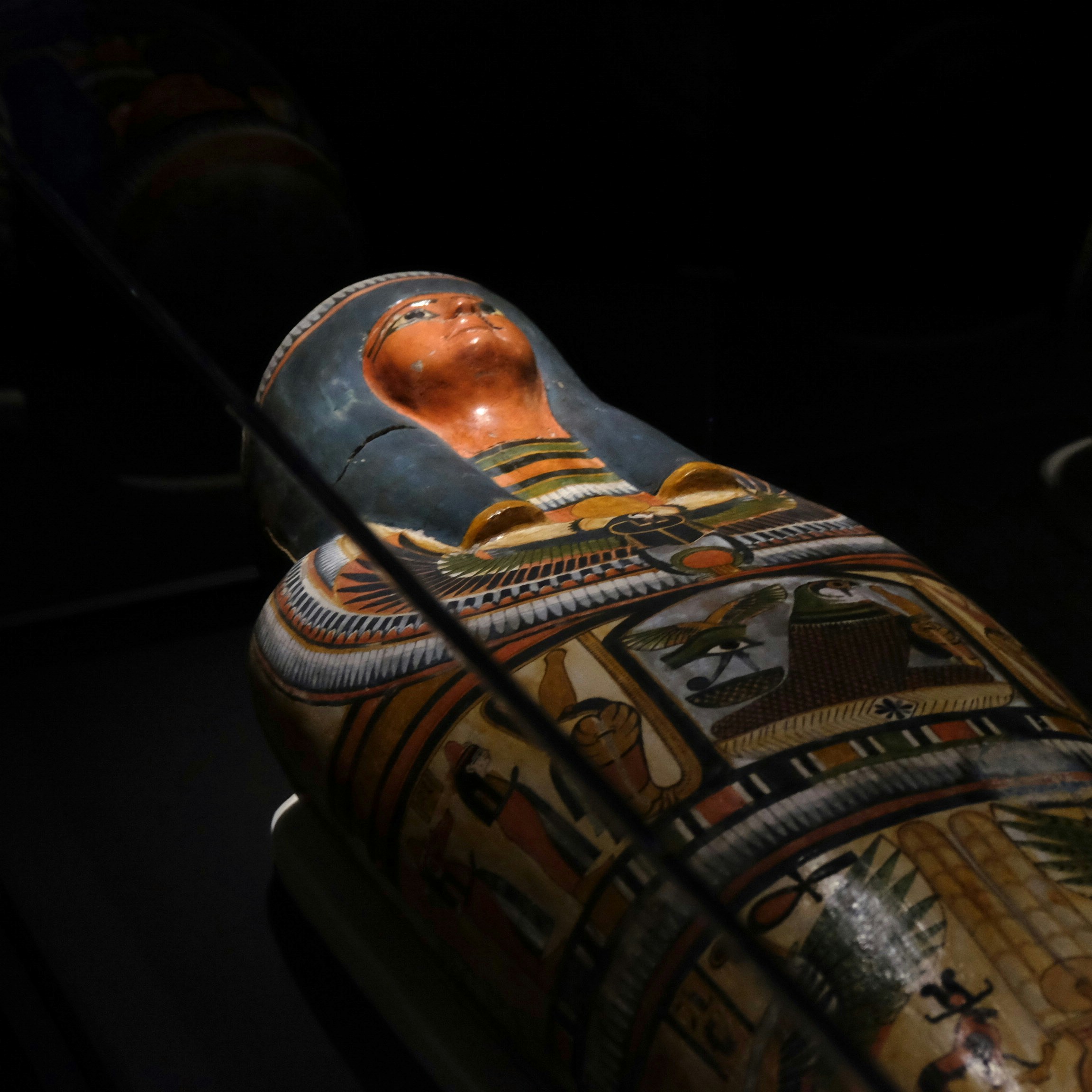 会場ではアメンイリイレトの地位の高さを示す3重の木棺とミイラ本体を展示。CTスキャンによって、ミイラづくりの際に使われた防腐処理や乾燥処理の技法が明らかになっており、この時代のミイラ制作の技術の高さをうかがわせる。