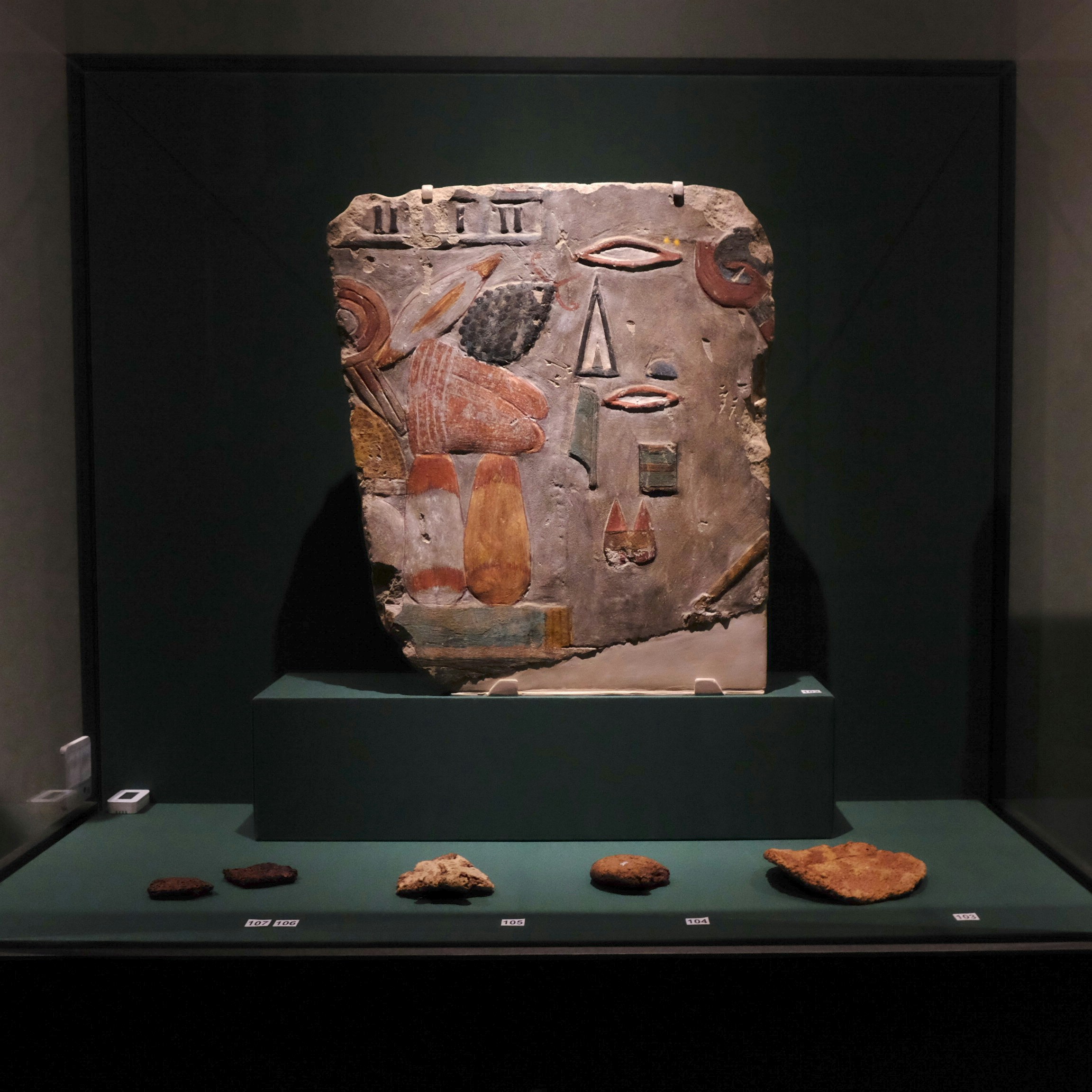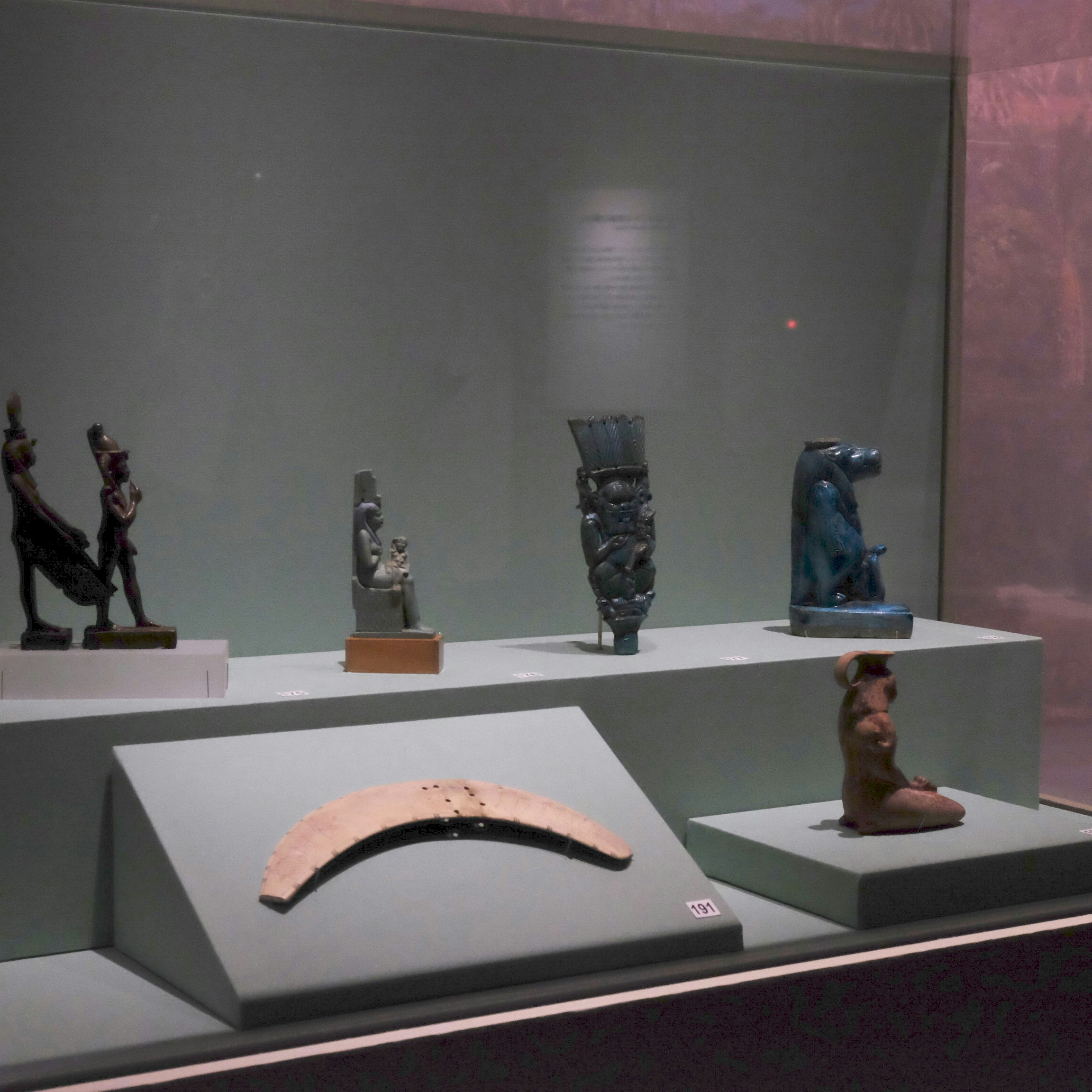 ミイラのほかにも古代エジプトの医学や食をつたえる資料として、ミイラとともに医学をつかさどる神々の像や、パン、ビール、ワインを展示されており、当時の医療への考え方や食生活を知ることができる。