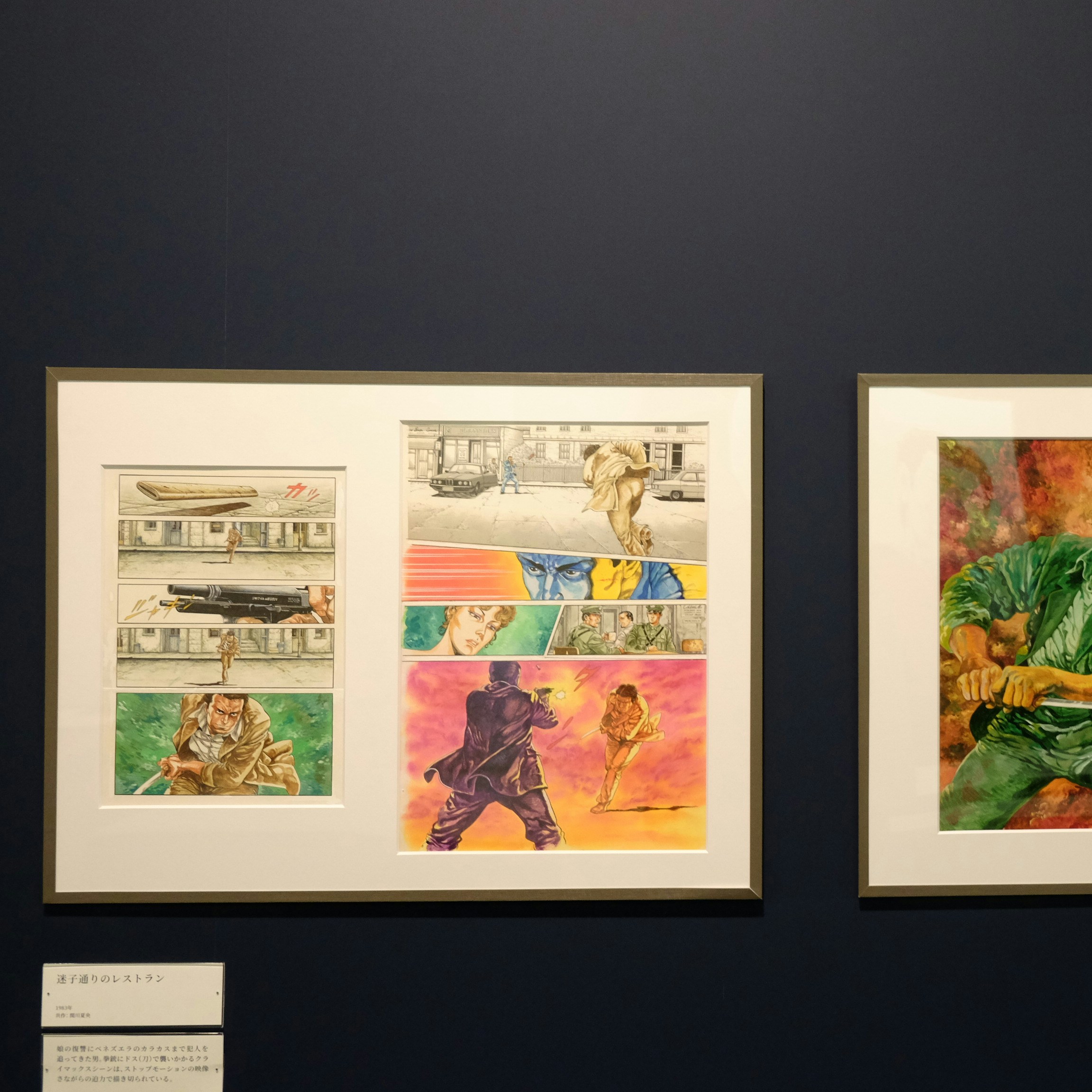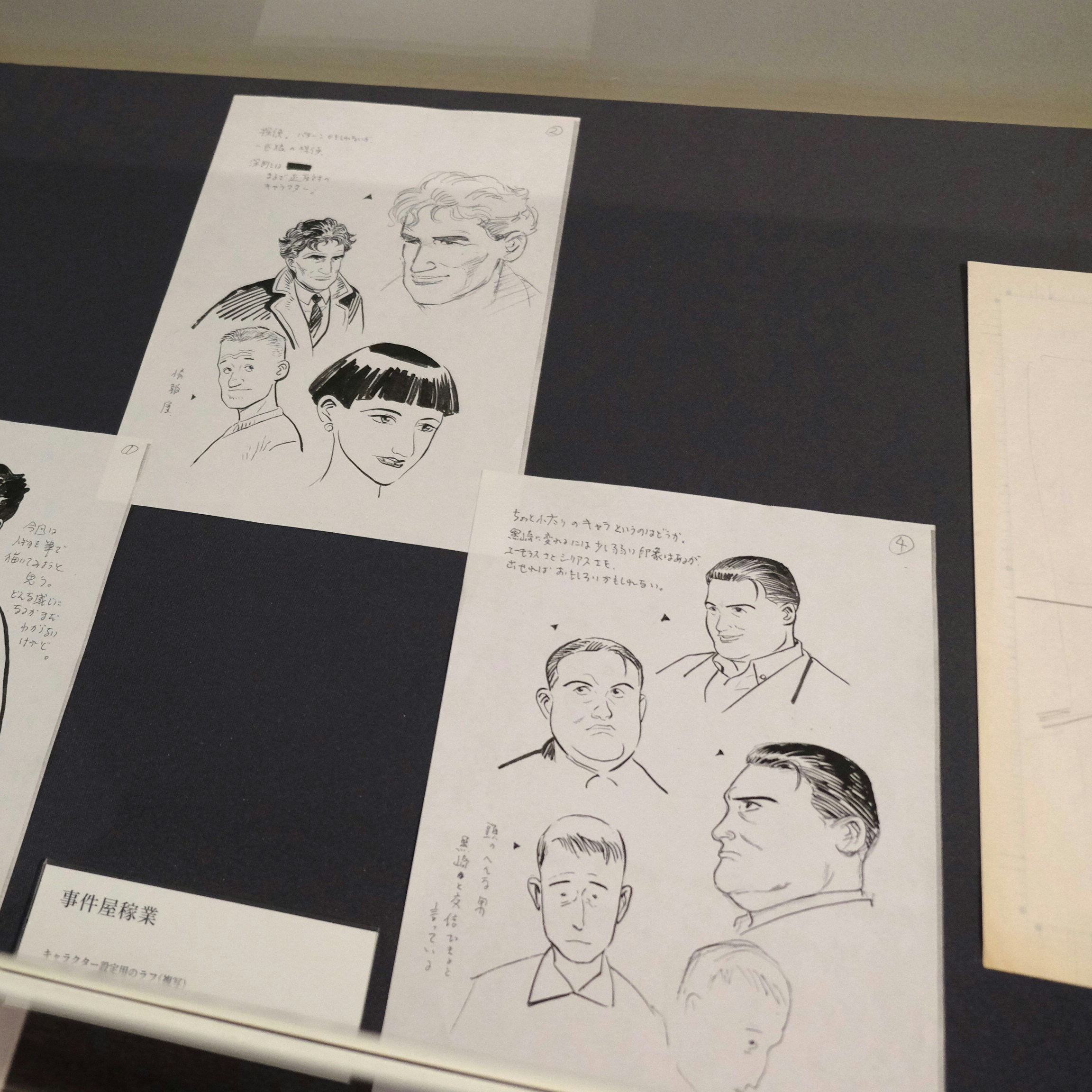 谷口のマンガを語るうえで重要な原作者が関川夏央だ。同世代のふたりは編集者の手引きで出会ったのち、77年から共作を開始。数々の傑作を生み出していく。会場では79年に始まり90年代半ばまで続いた『事件屋家業』のキャラクター設定ラフをはじめ、関川とともに手がけた作品の数々の原画を展示。巧みなベタ使いによるハードボイルドな陰影表現や、カラー原画の迫力ある色使いをじっくりと楽しむことができる。