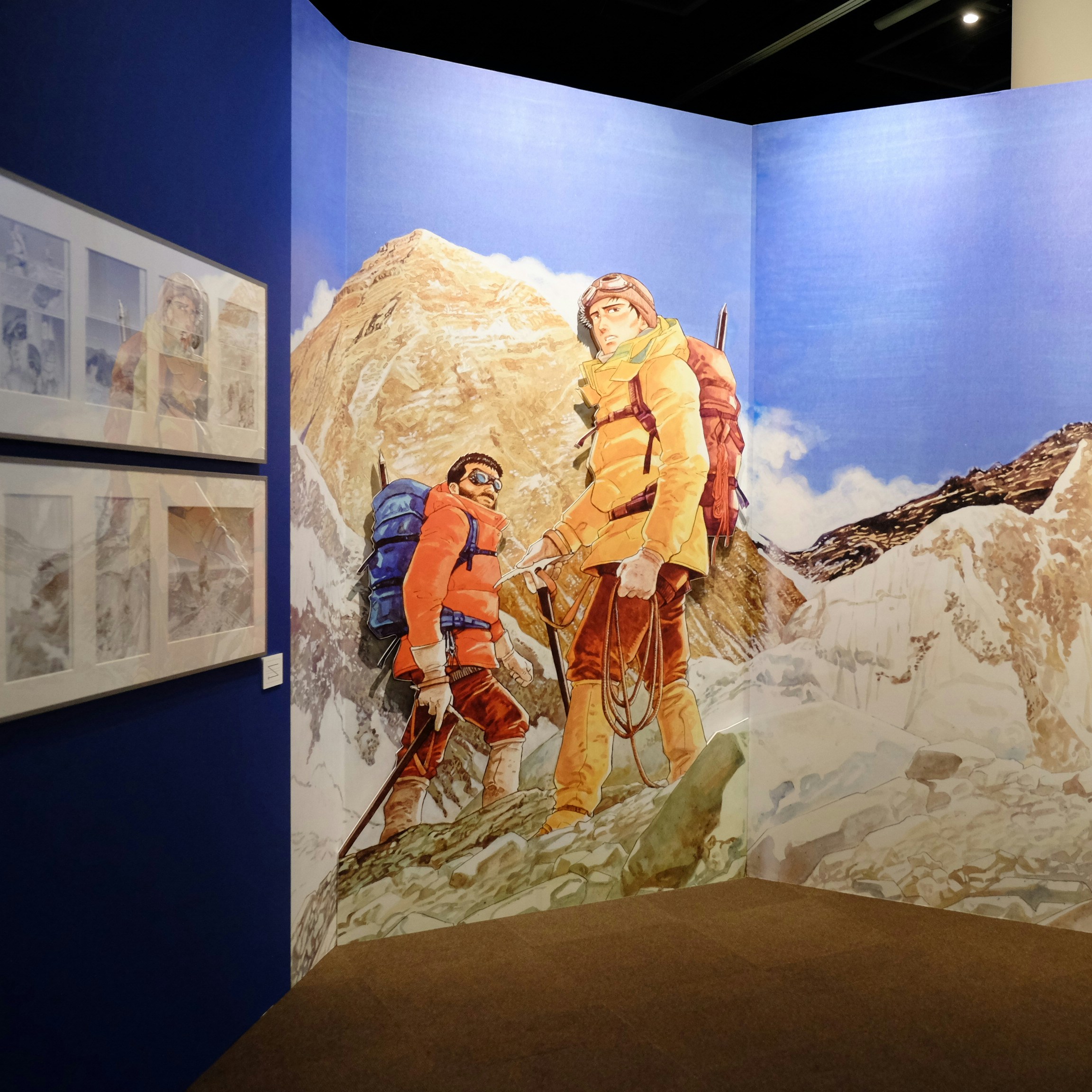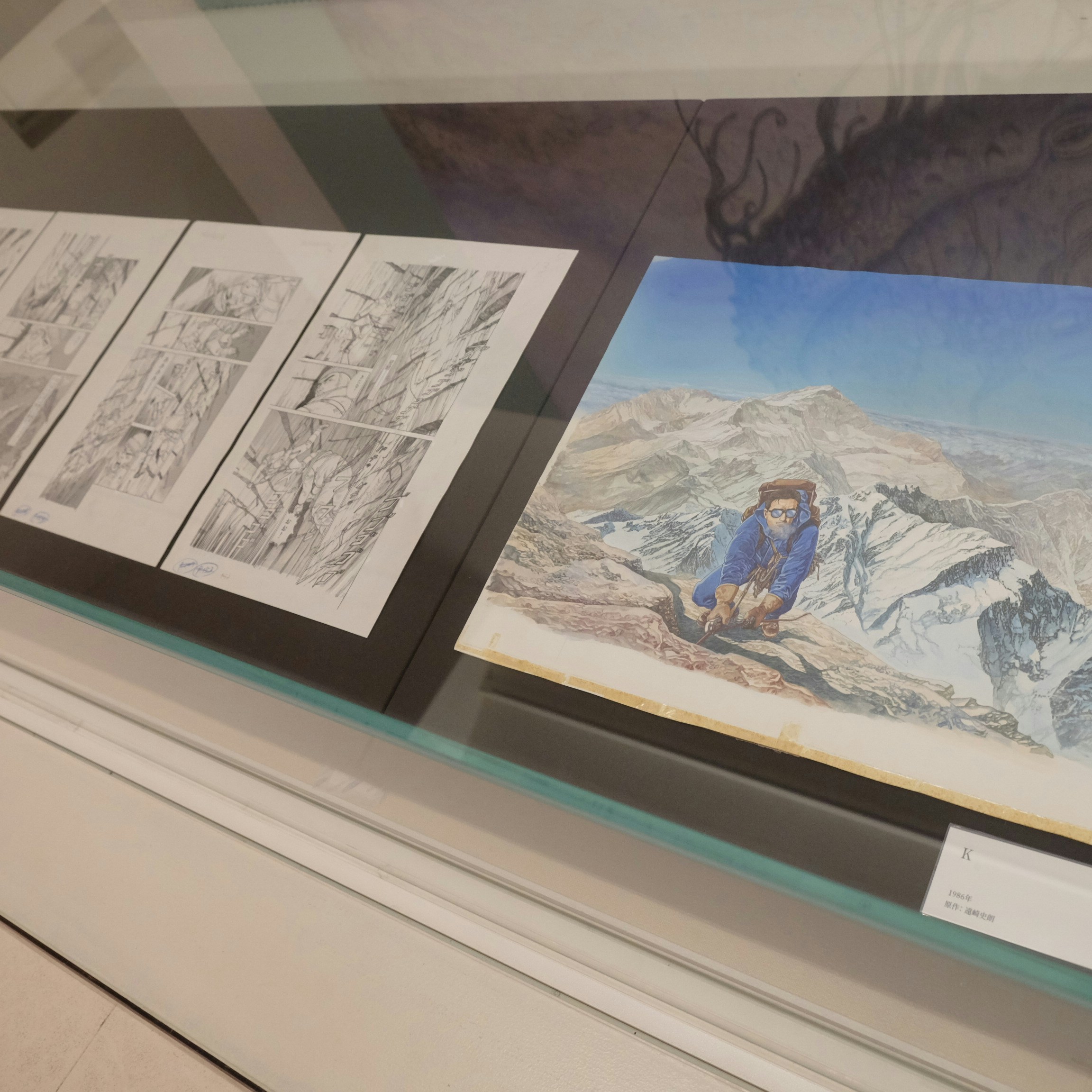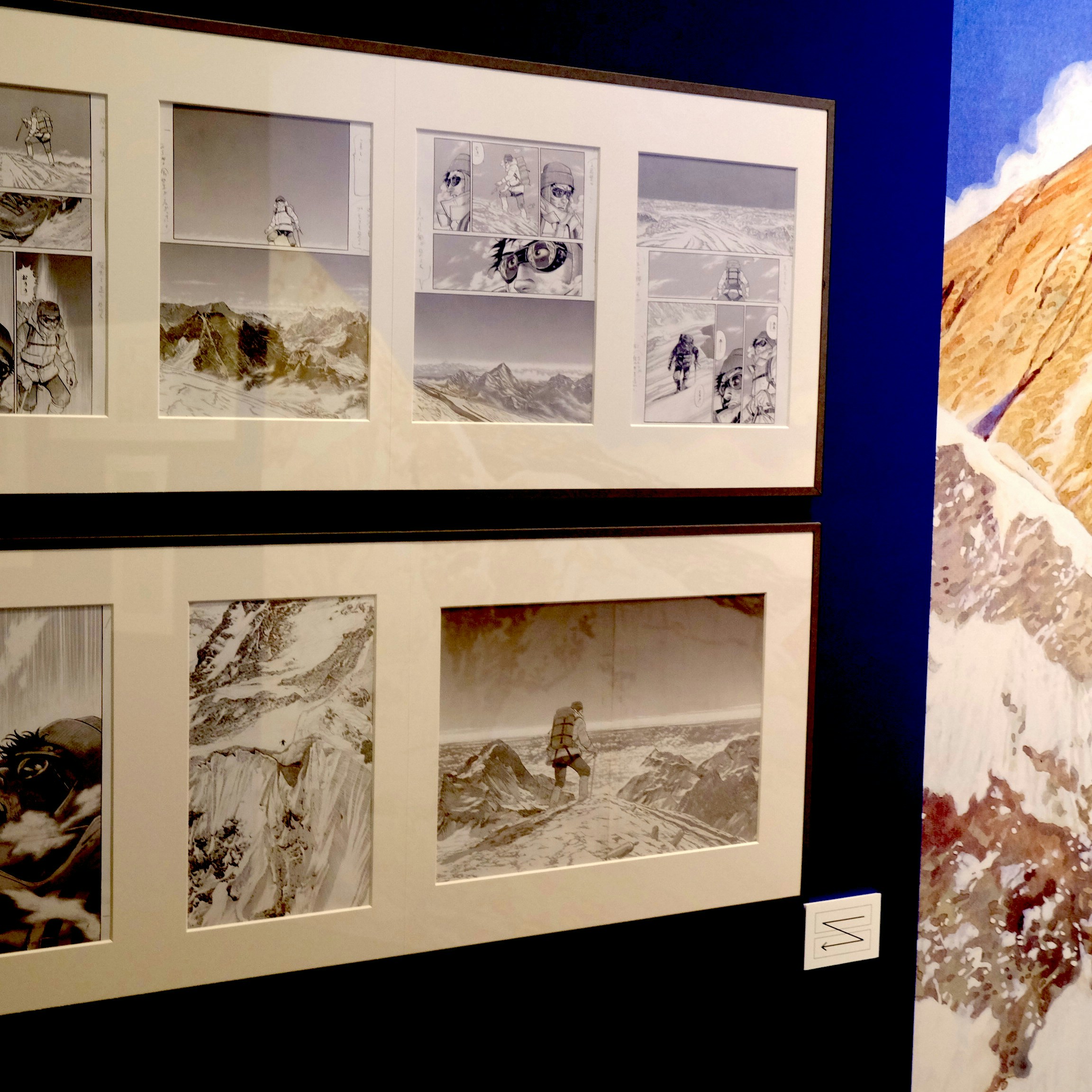 とくに夢枕獏の小説をマンガ化した『神々の山嶺』は、圧倒的な山岳風景や、登頂時の心理を克明に映す人物の描写が高く評価され、多くの賞を受賞した。原画をプリントしたパネルとともに組み合わされた原稿群からは、デビューから時を経て谷口がいかにその画を研ぎ澄ませていったのかがわかるだろう。