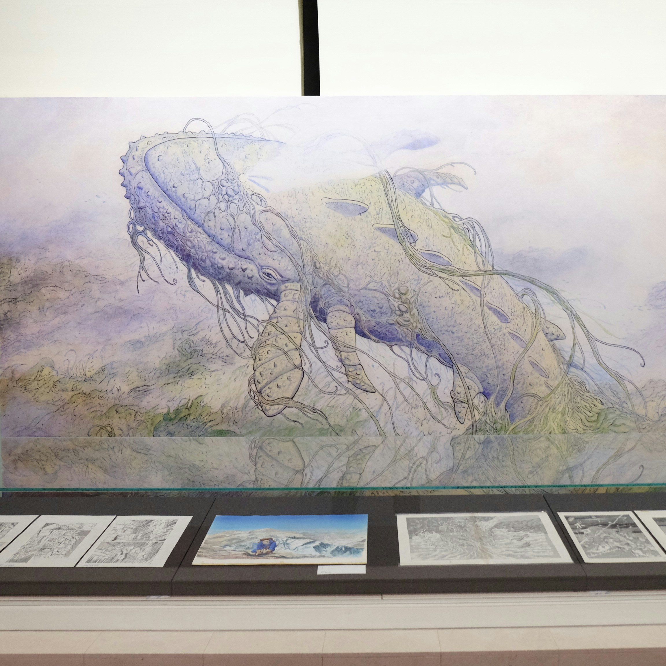 1982年、谷口は初のオリジナル長篇である『ブランカ』の連載を開始。軍用に遺伝子操作された犬・ブランカが、飼い主のいるニューヨークを目指してベーリング海峡をわたる物語だ。展示された原画からは、人語を話さないブランカの内面が、目や表情、自然の描写を通して巧みに描かれていることがよくわかる。