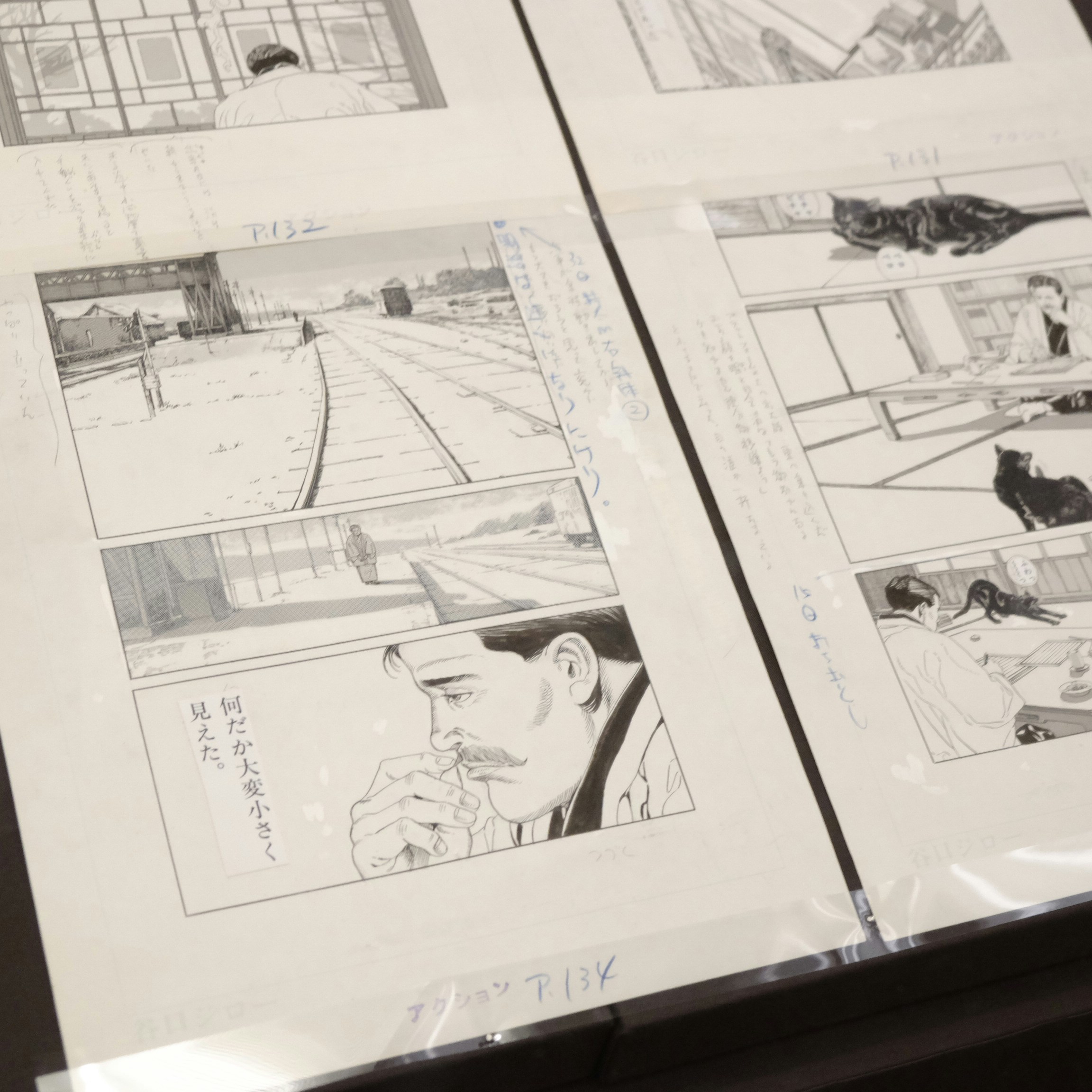 展示では、作品のバックグランドの紹介のみならず、多くの原画を展示。服装から店や家の様子、建築までを細密に描き、関川の原案に骨太な物語の舞台を与えていった谷口の手腕を堪能したい。