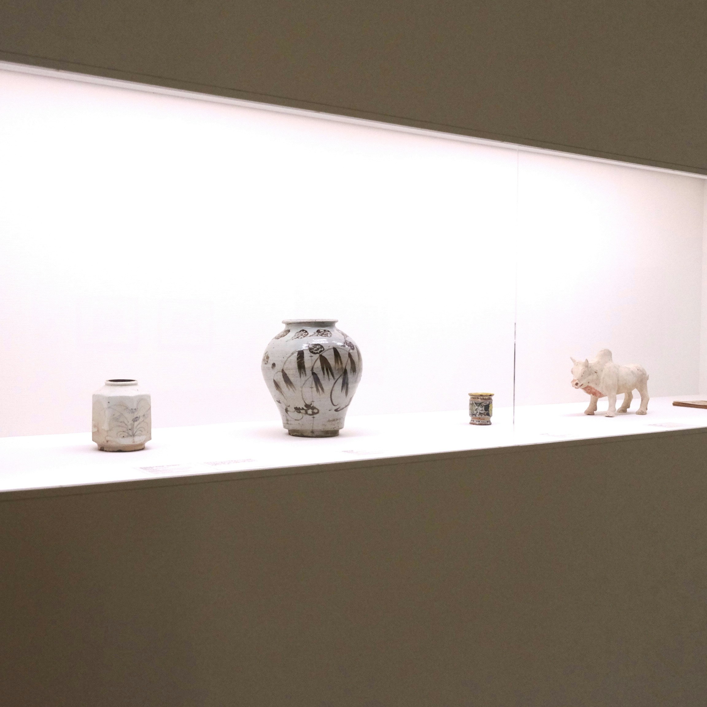 朝鮮陶磁器の美に目覚めた柳は、1916年以降、頻繁に渡朝。1919年に起きた日本の植民地支配に対抗する三・一独立運動では、朝鮮の芸術への思慕と一体になるかたちで日本の朝鮮政策を批判する立場をとった。会場には、当時の柳が集めた白磁をはじめとする、朝鮮の陶磁や家具が集められた。