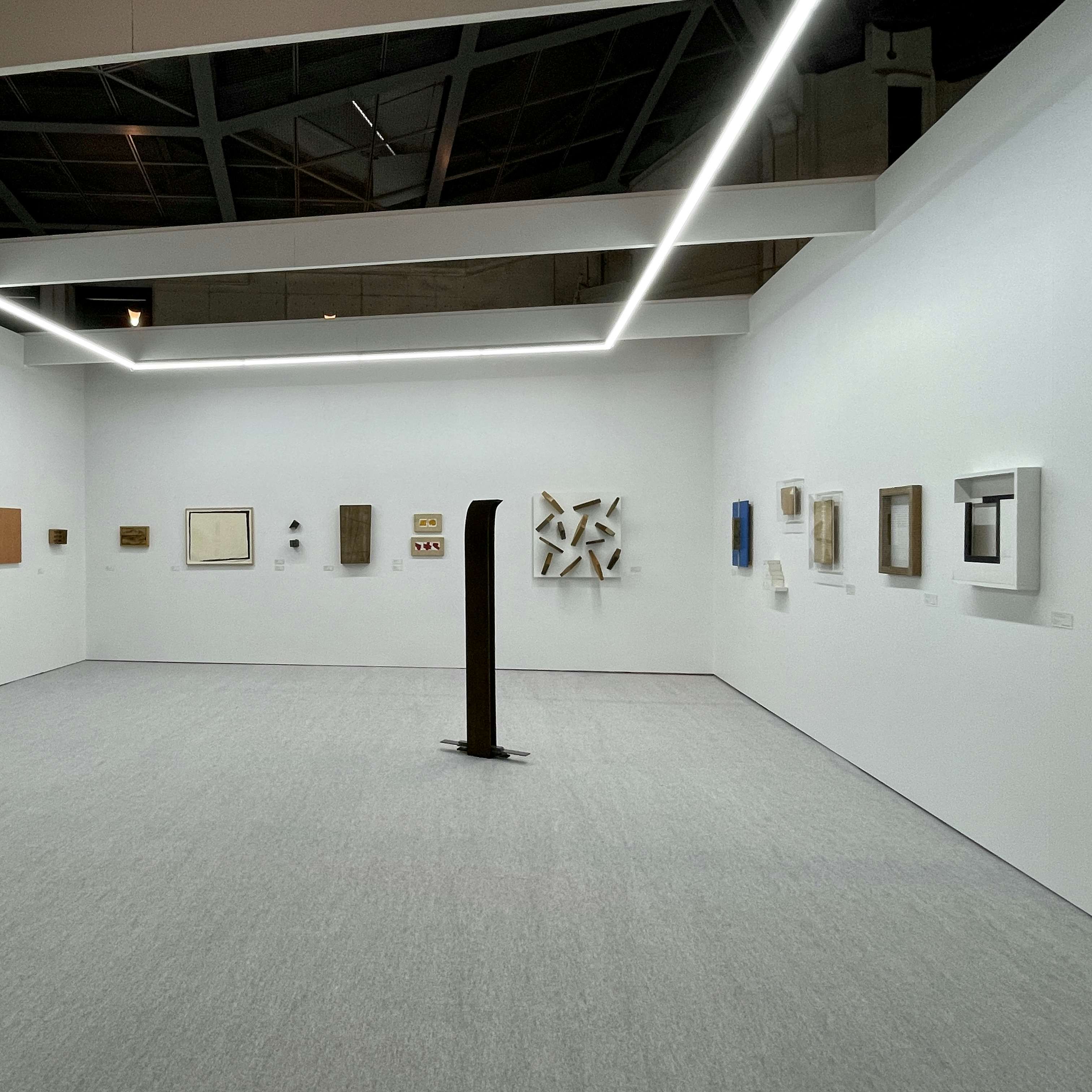 ミニマルでコンセプチュアル的な作品が印象的なこのブース。小山登美夫ギャラリーの石川絵理は、「もの派は日本で発生したムーブメントだが、その時代には世界同時多発的に身近にあるモノで作品をつくるという潮流もあった。それを2021年に改めて見せるという企画だ」としている。