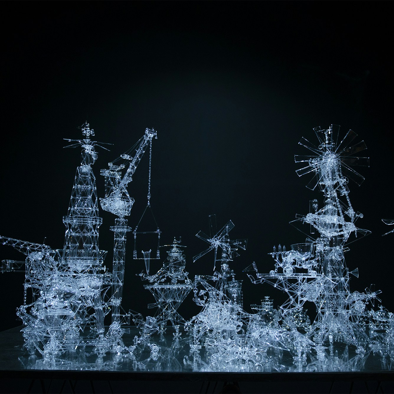 牛久駅で途中下車し、牛久商店街に向かう。印旛沼で漁師として働きながらガラス作家として活動する柳建太郎は、芸術祭期間中は自身の工房「アトリエ炎」を牛久に移設。風車やクレーンなどをモチーフにした動くガラス作品を展示している空間では、会期中に公開制作やワークショップも予定している。