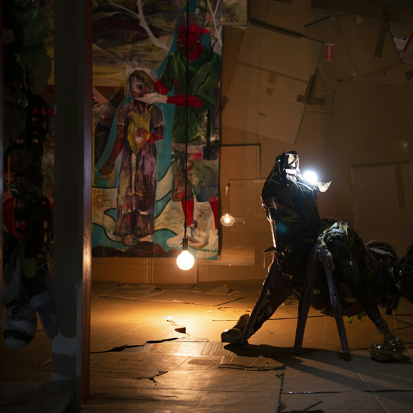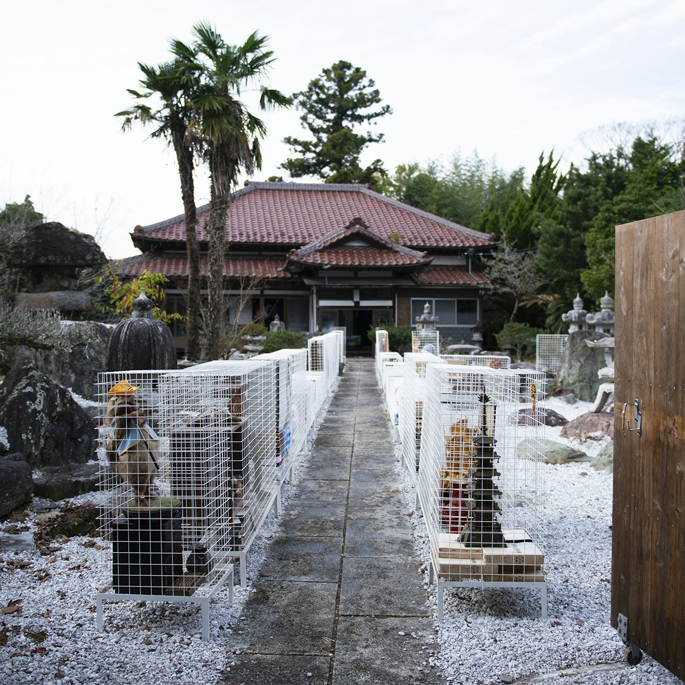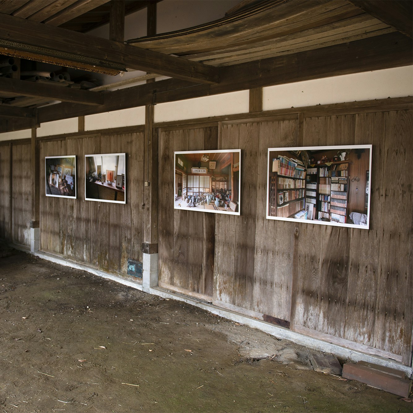 エルモ・フェアメイズの作品からほど近く、1軒の民家を舞台に2名の作家が制作を行った。小さな集落にある、かつて有力者が住んでいた屋敷に残された大量の品々。アイシャ・エルクメンはそれらを整理し、石像の並ぶ庭の通路に陳列した。空っぽになった屋内にはモニターを設置し、その作業風景を収めた映像を流す。そして芸術祭のメインヴィジュアルも担当した写真家の石塚元太良は、雑多な品々が整理される前の屋内を撮影し、向かいに位置する民家の軒先に展示した。
