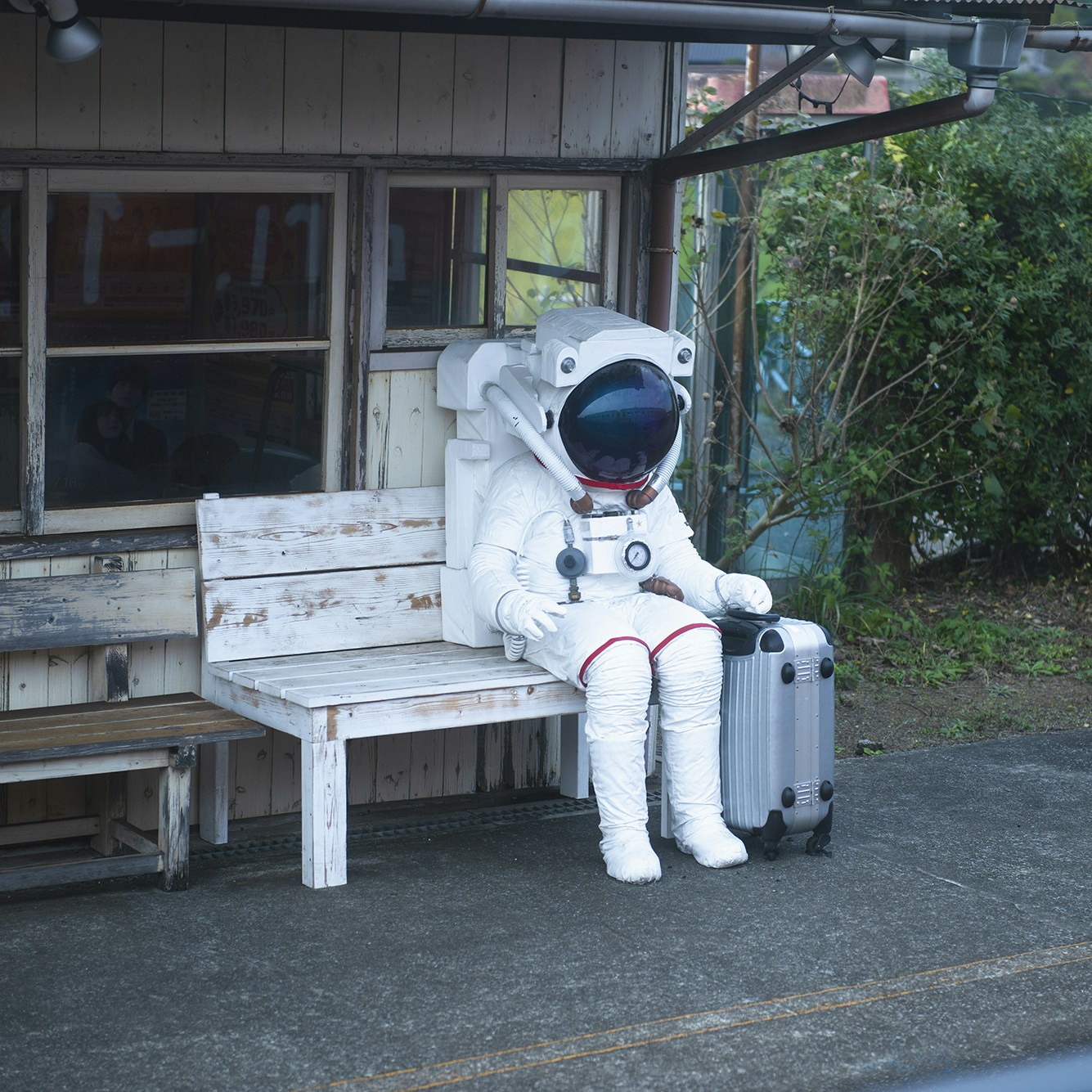小湊鉄道に乗ると、「駅プロジェクト」として複数の駅に作品が展示されている。モスクワを拠点に制作を続けるレオニート・チシコフは小湊鉄道を銀河鉄道に見立て、五井から馬立までの7駅に月と宇宙をテーマとする作品を展開。車窓から楽しめる作品もあり、のどかな鉄道駅の風景に突如飛び込んでくる宇宙飛行士の姿などにドキッとさせられるはずだ。