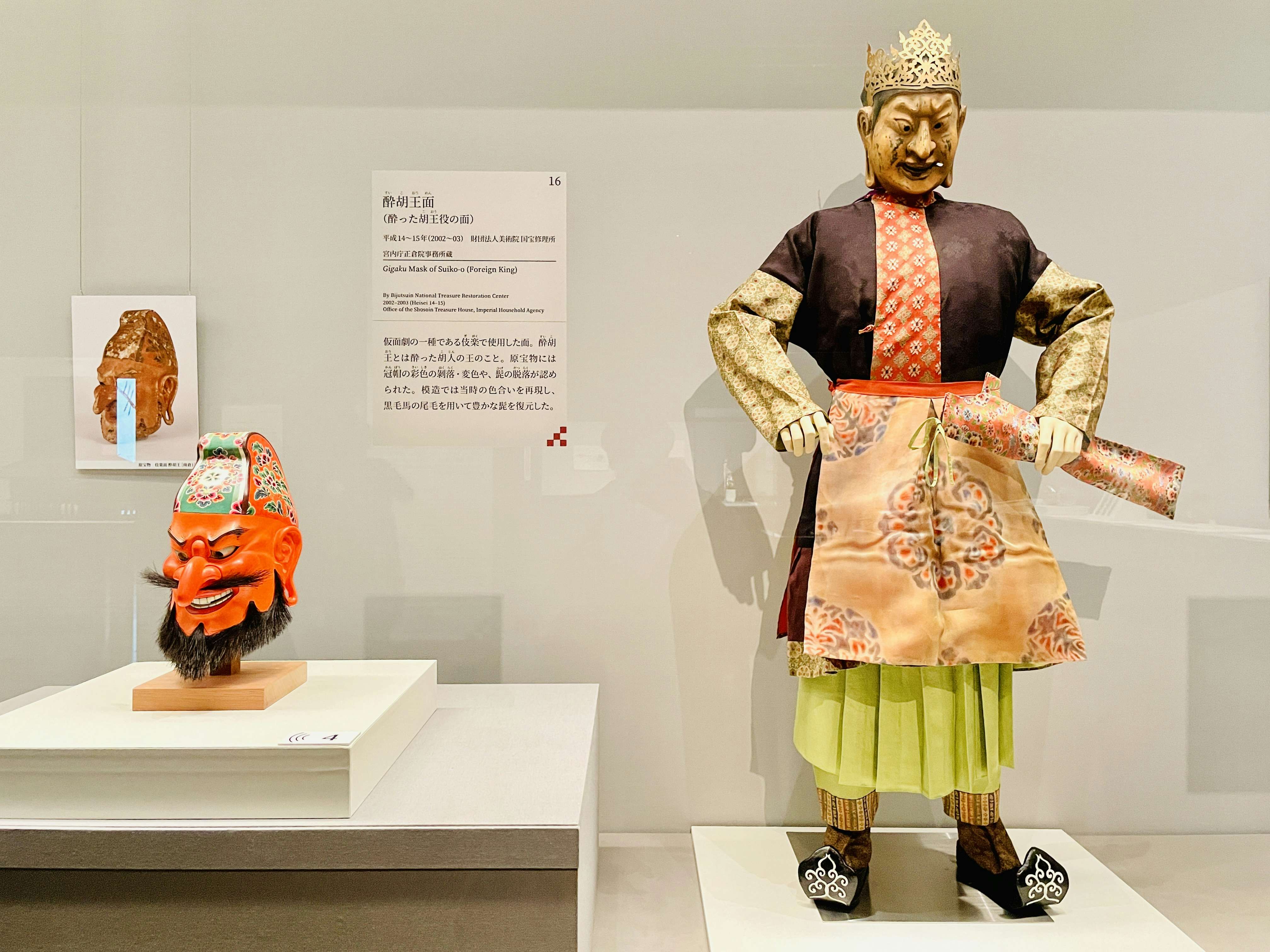展示風景より左から、《酔胡王面》(2002-03)、《伎楽人形 呉工》(20世紀)