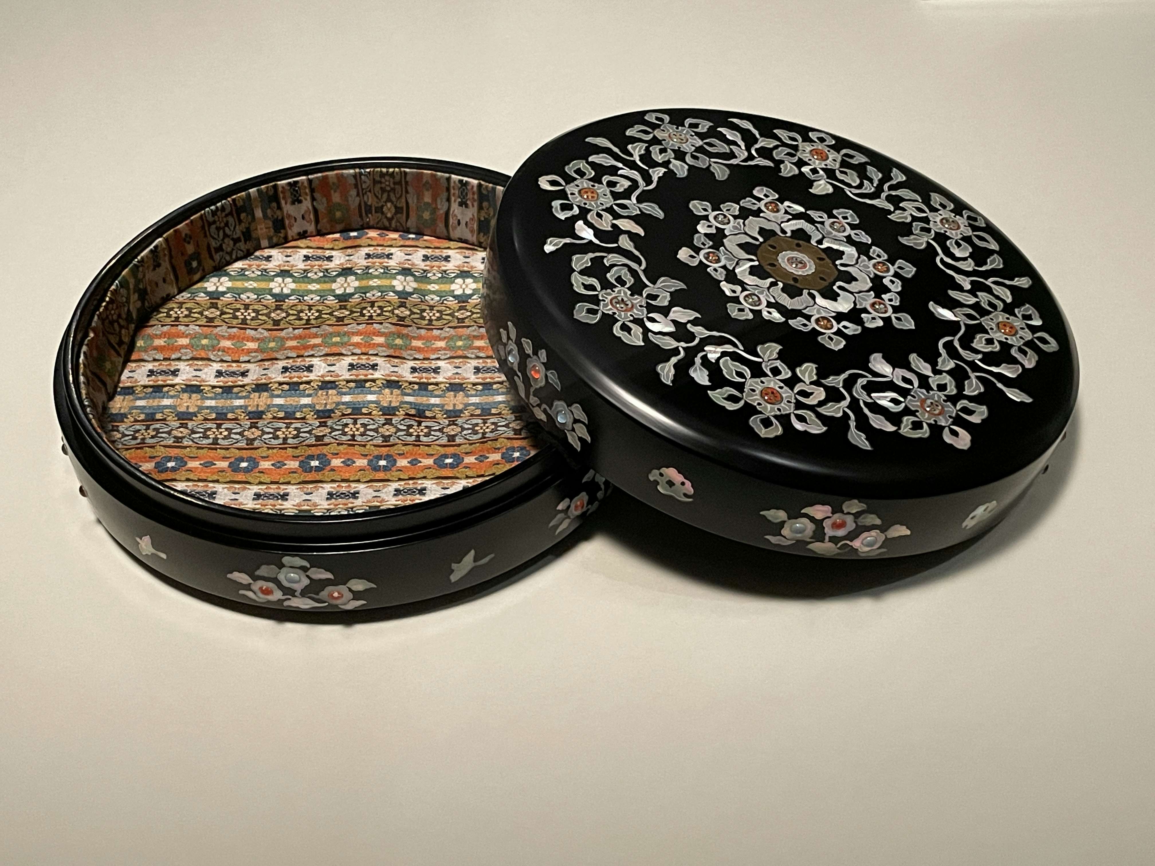 展示風景より、《紺玉帯》(1980)を収めたとされる《螺鈿箱》(1976-77/1979)