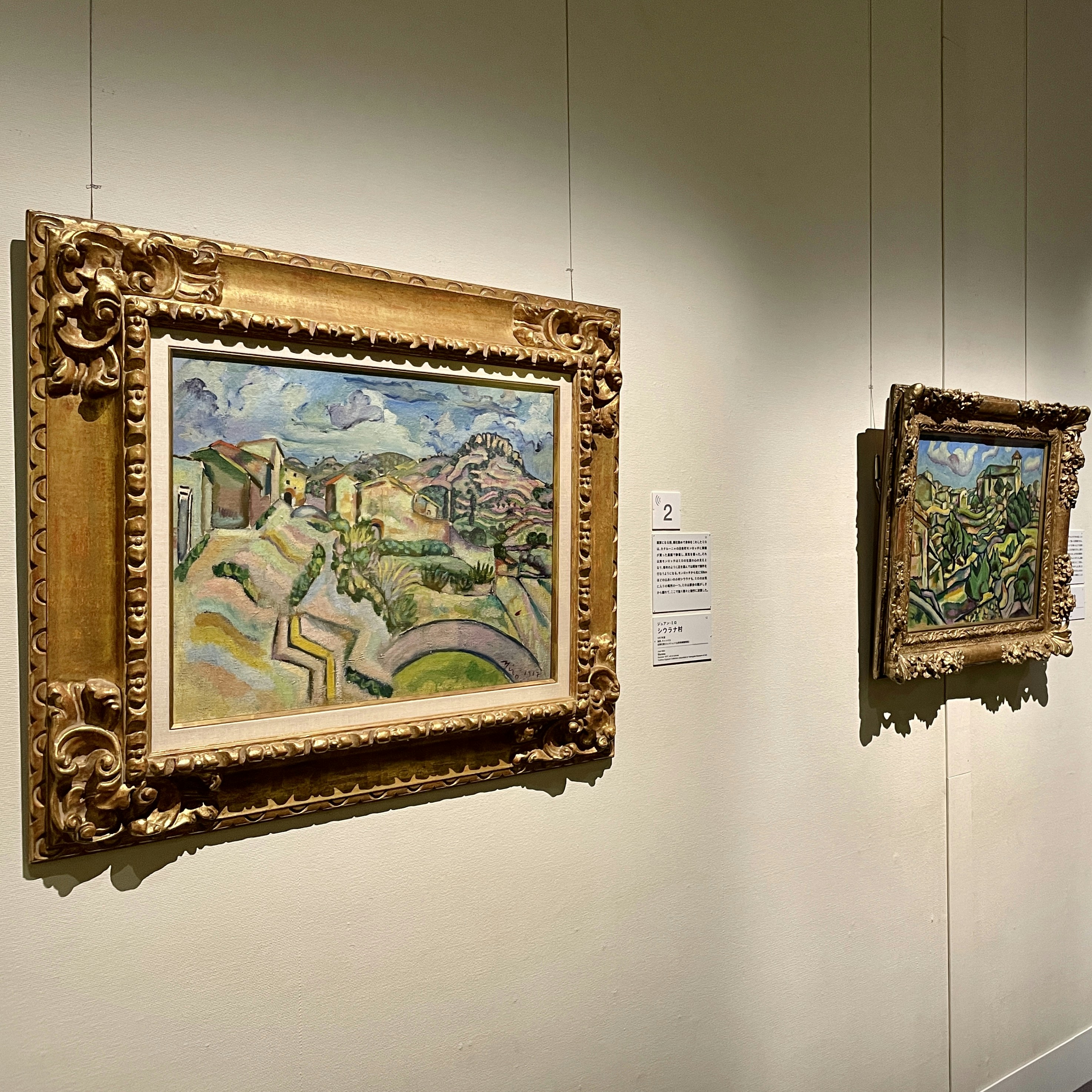 第1章では、ミロが日本への関心を直接的に画面に反映させた作品が展示。例えば、親友リカルの肖像の背景に浮世絵をコラージュした《アンリク・クリストフル・リカルの肖像》(1917)は、ミロと日本のつながりを示す出発点でもあった。そのほか、異国情緒を感じさせる扇子が描かれた《赤い扇》(1916)や、歌川国虎《近江八景》の土坡表現と意外な類似性のある《シウラナの教会》(1917)など若き日の作品からも、ミロの日本への興味がうかがえるだろう。
