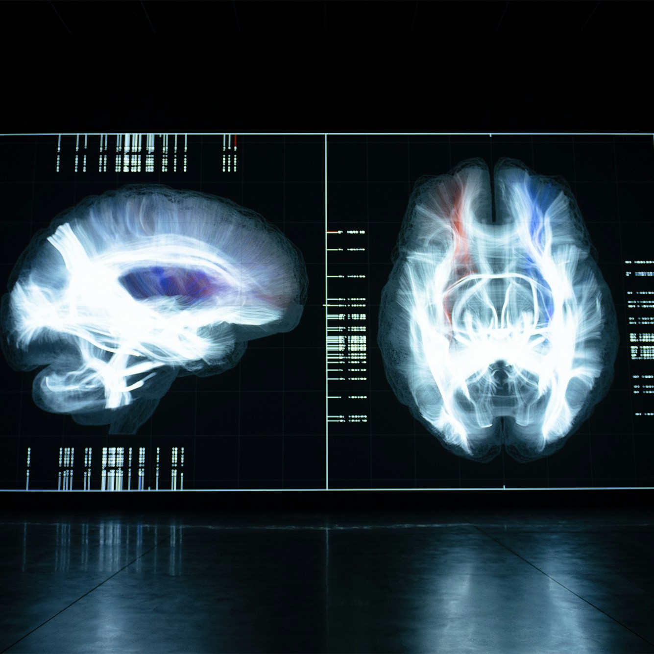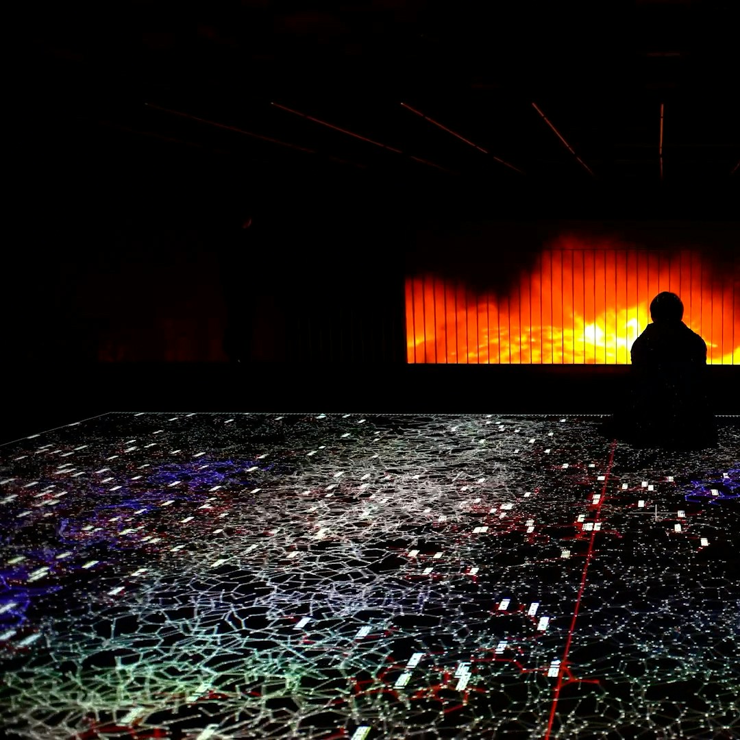 音を最小単位まで還元しようとすると、正弦波(サイン波)と呼ばれる規則的な波形で表すことのできる音と、完全にランダムで無秩序で、あらゆる周波数が織り込まれたホワイトノイズというものに分けられる。そして映像は光であり、最小単位にするとピクセルだ。それらの最小単位に還元された音と映像の要素に、どうやって構造を与えるか。そこで使用するのがデータというわけだ。常人では考えられないような膨大なデータを扱い、その範囲も素粒子などのミクロなスケールからビッグバンにまつわるマクロなものまで、想像を絶する幅広さだ。そんなデータに裏打ちされた作品なのだから、鑑賞者を没入へと誘い、ゾクっと震えがくるような圧倒的な威力を備えるのだ。