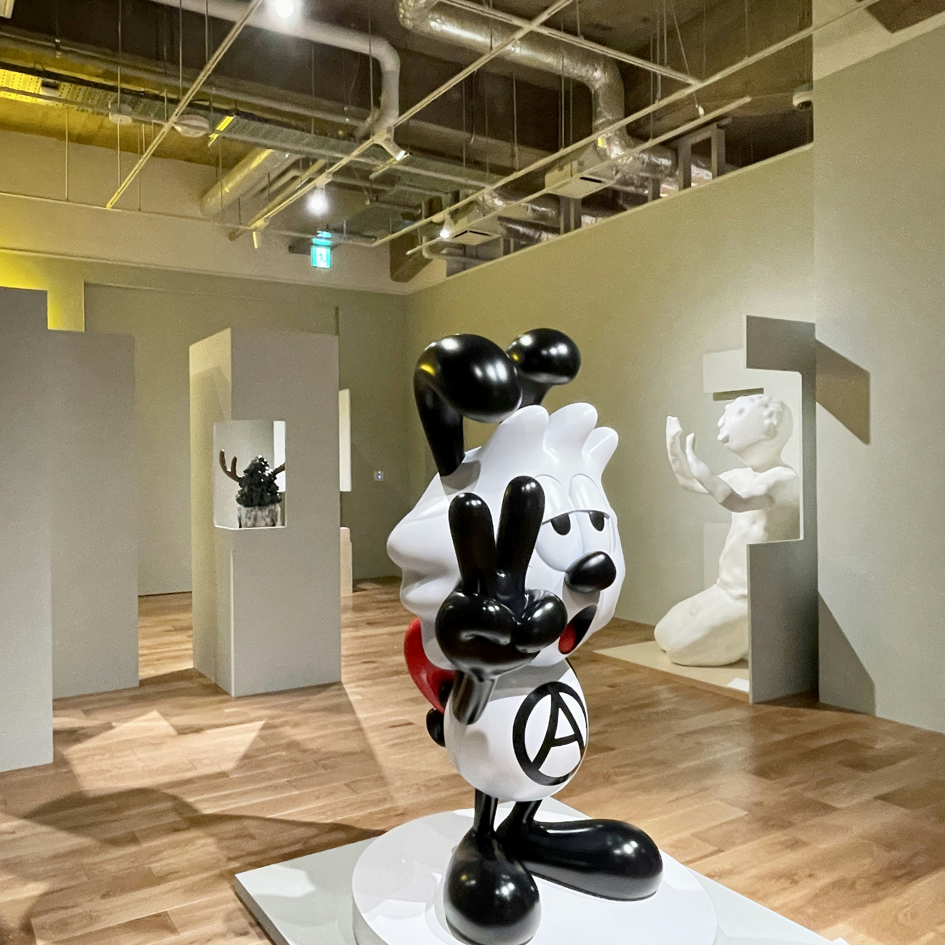 例えば、同エリアの中央にはグラフィックアーティスト・VERDYによる初の大型立体作品《VICK》が出現。同作の真正面にはマンゴ・トムソンの鏡面作品《November 14, 2016(The End is Near)》が展示されており、鑑賞者が鏡に映り込むことで作品が完成するというものだ。そのほか、桶田夫妻が直接アーティストにコミッションしたMr.の《かりん ― 甘酸っぱい思い出》や、上海のアートフェアで購入したアフリカ系アメリカ人アーティスト、チャバララ・セルフのネオン作品《Wash N' Set 2》なども、同エリアの注目作品だ。