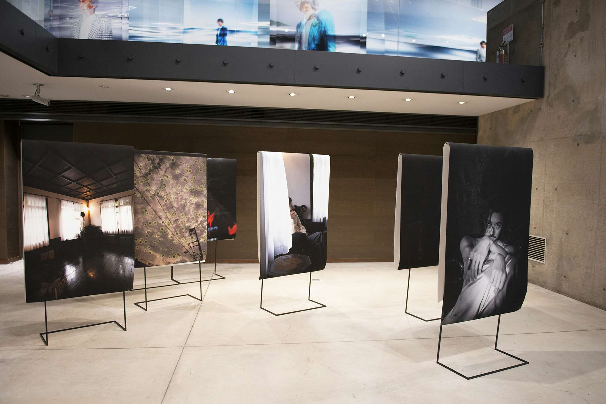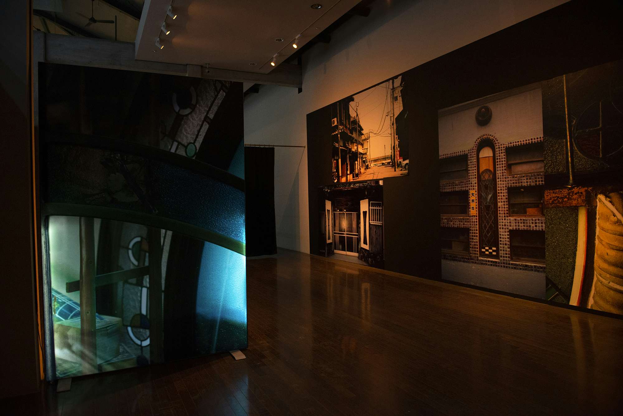 石内都の写真作品をプリントした暖簾をくぐった先に、インスタレーションが展開する