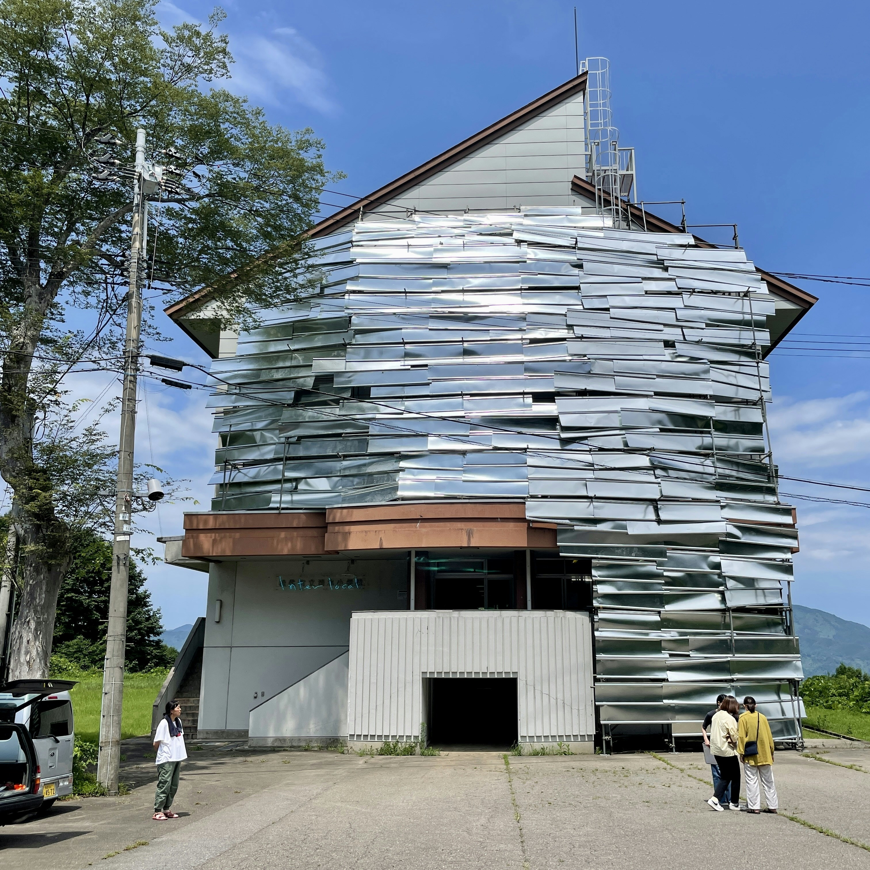現在フランスを拠点に活動している川俣正は、松代エリアにある旧清水小学校の建物外部のファサードに新たなインスタレーション作品《スノーフェンス》を発表。冬場の雪囲いをイメージにした同作では、工事用の鋼板を建物の外壁に沿わせるかたちで設置されており、実際に冬の雪対策として通年で公開される予定だという。