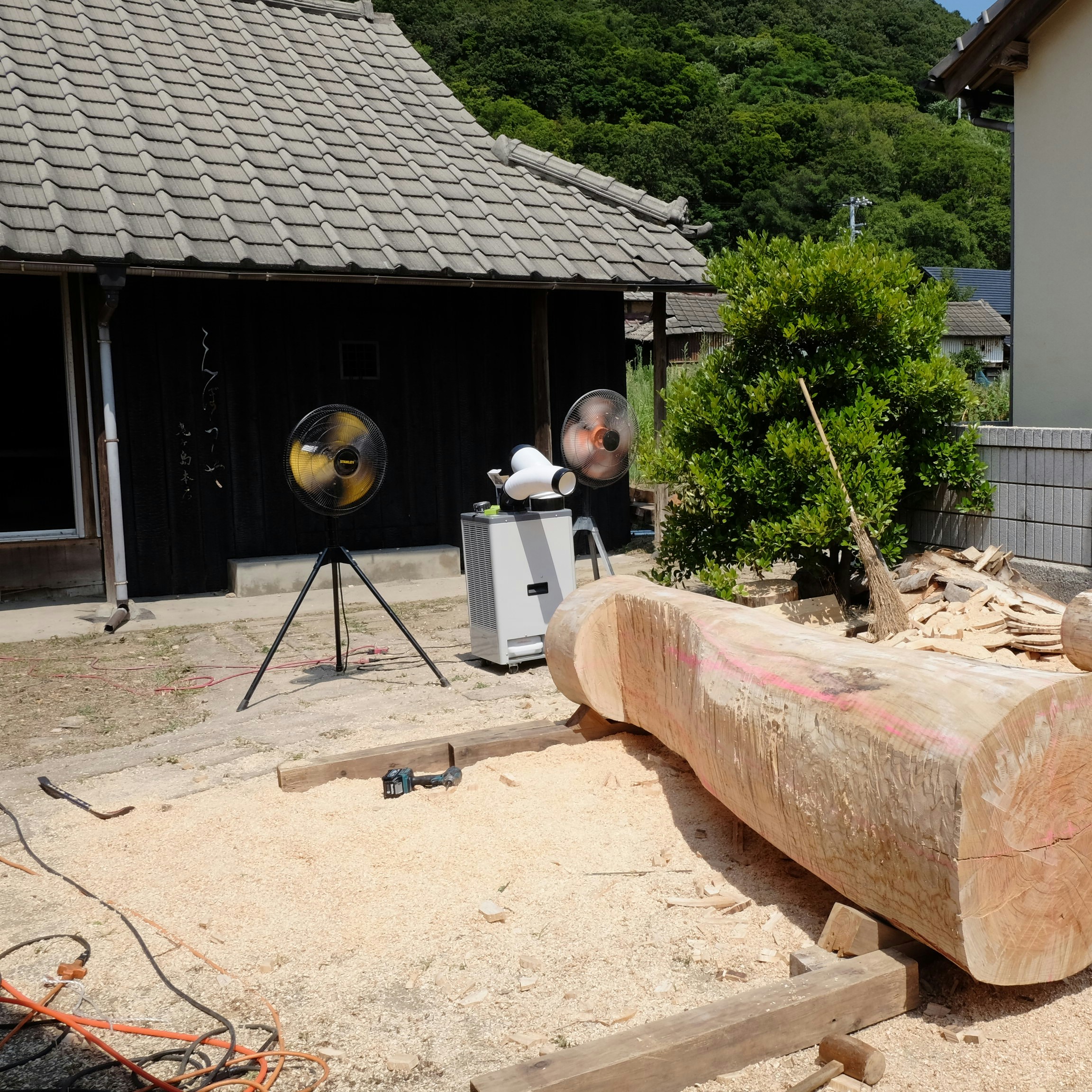 大洞窟の存在から「桃太郎」の鬼ヶ島とも言い習わされる女木島。この伝説をモチーフに、小谷元彦は《こんぼうや》(2022)を島の空き家をつかって展開する予定。木を削り出して「こんぼう」を実際につくり展示を行うという。