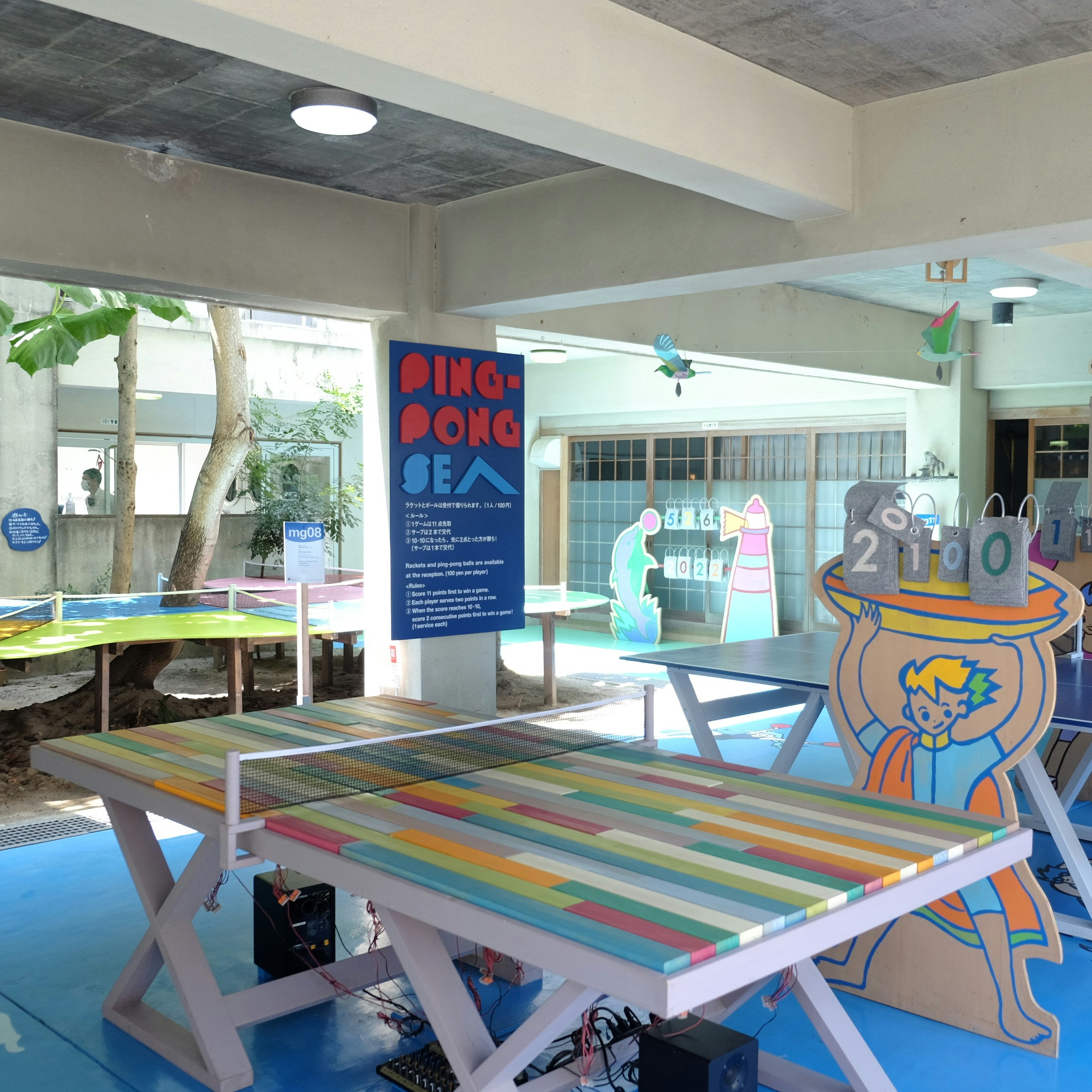 2019年に始まった島の中に小さなお店をつくるプロジェクト「女木島名店街」の中心地である「寿荘」。ここでは、様々な卓球台を楽しめる原倫太郎+原游《ピンポンシー》(2019)や、レアンドロ・エルリッヒのコインランドリーをモチーフとした作品《ランドリー》(2019)などが展示されており、こちらもぜひ立ち寄りたい。